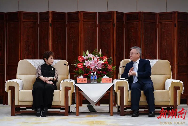 9月15日,省委书记沈晓明在长沙会见出席第十七届湘台经贸文化交流合作会的中国国民党前主席洪秀柱等嘉宾代表。