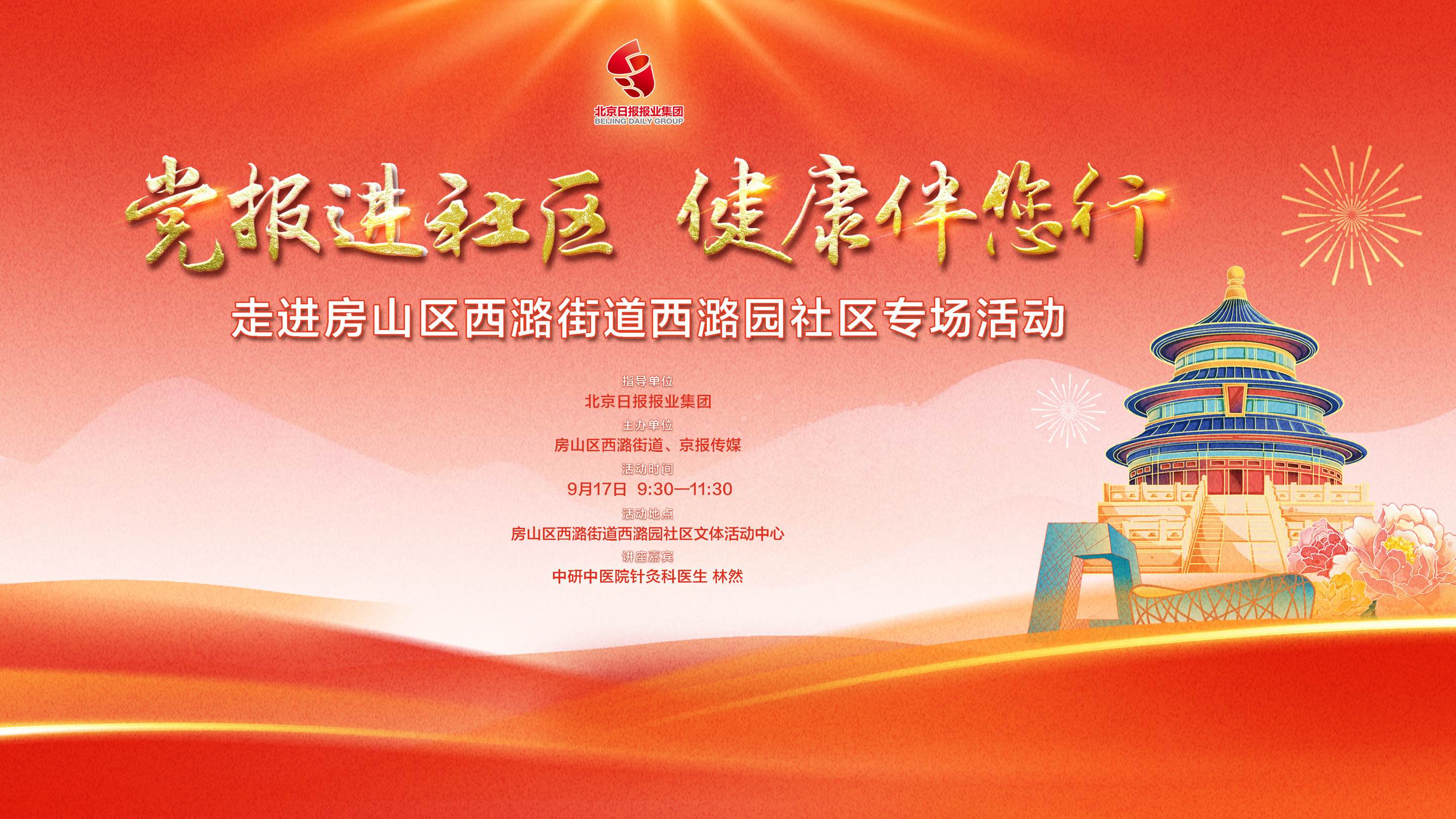 为更好地守护大众健康、做好常见病防治知识宣教,9月17日,由北京日报报业集团指导,房山区西潞街道、京报传媒联合主办的“党报进社区 健康伴您行”专场活动将在房山区西潞街道西潞园社区举办。
