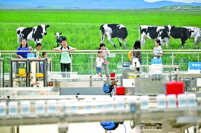 游客在内蒙古呼和浩特市伊利现代智慧健康谷液态奶全球智造标杆基地参观。新华社发