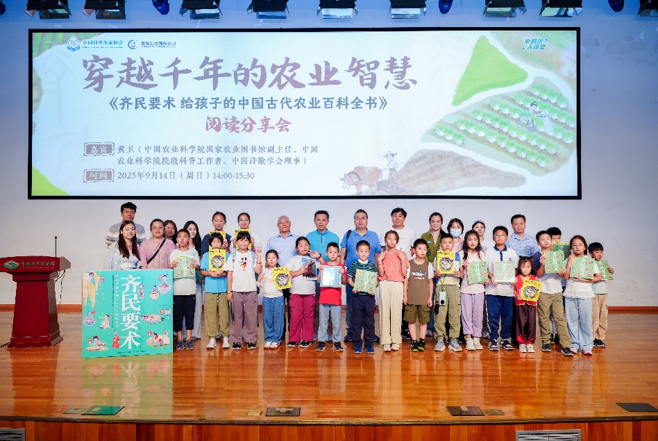 2025年9月是首个全国科普月,为使公众更深入了解科普知识、感受科学魅力,在中国科普作家协会的牵头下,童趣出版有限公司邀请中国农业科学院国家农业图书馆副主任、中国农业科学院院级科普工作者黄卫日前来到中国科技馆,以“穿越千年的农业智慧”为主题,分享童书《齐民要术 给孩子的中国古代农业百科全书》。