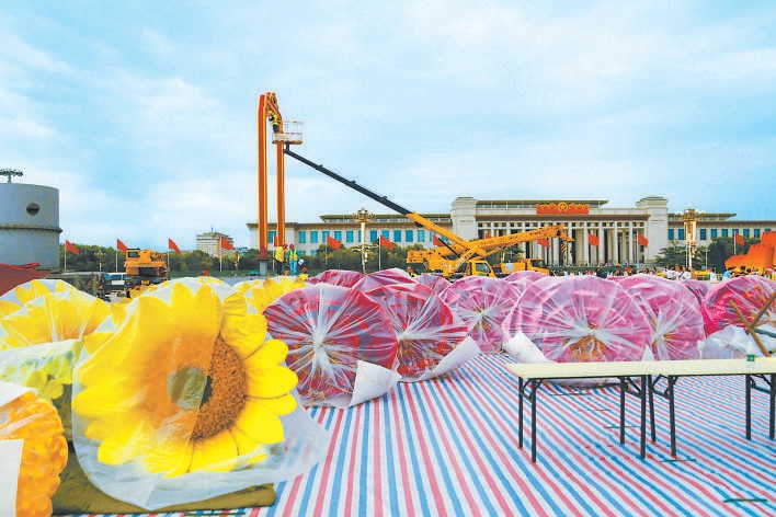 迎接新中国生日,天安门广场和长安街沿线年年摆花。昨天,市园林绿化局公布了今年的花卉布置方案,18米高的巨型花篮处处彰显和平的愿景,预计在10天后完工。