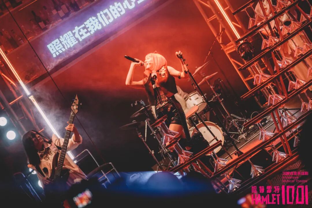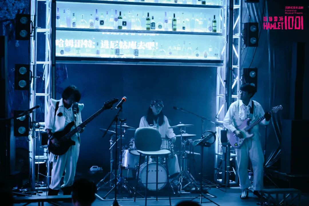演出在一阵富有节奏感的鼓点中开启。《哈姆雷特1001》由北京抓马艾克斯文化传媒有限公司与北京市对外文化交流有限公司联合出品,以“单卖酒吧”为背景,戏剧导演赵大彪为盘活濒临破产的酒吧,召集酒吧员工改编《哈姆雷特》,试图通过音乐演出重焕酒吧生机。