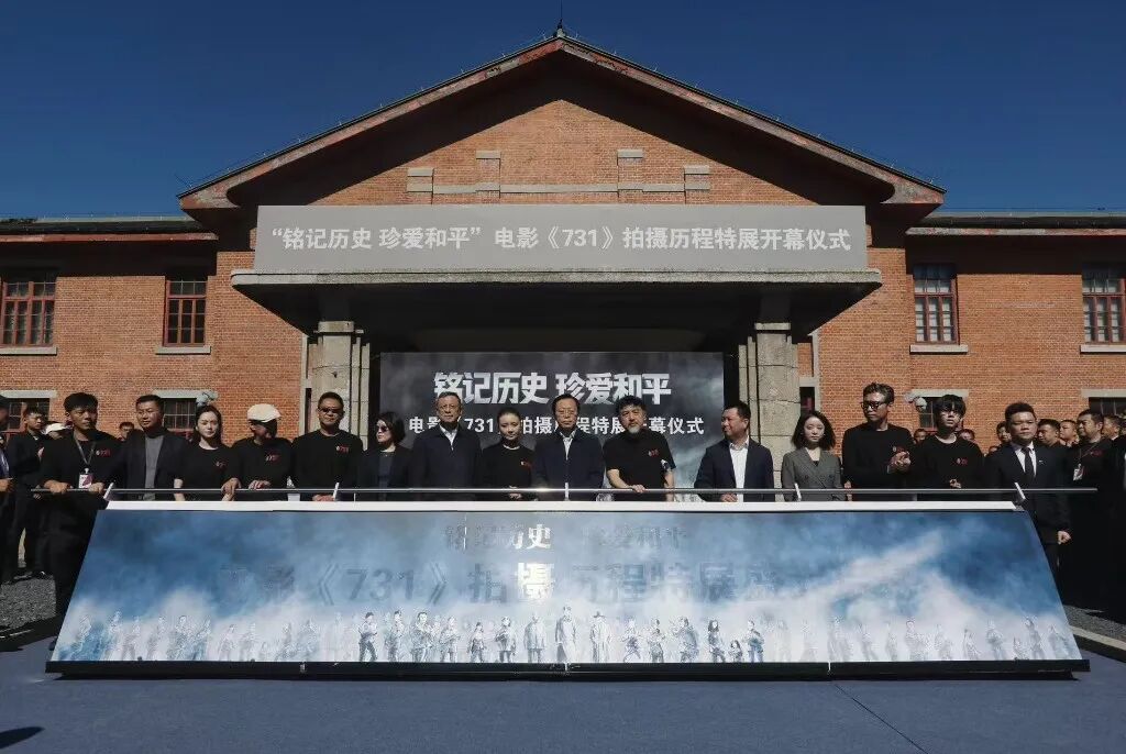 同日,电影《731》拍摄历程特展开展仪式在位于哈尔滨市的侵华日军第七三一部队本部旧址门前举行。据了解,电影《731》拍摄历程特展并不是影视道具的简单展陈,而是历史记忆的构建场所。