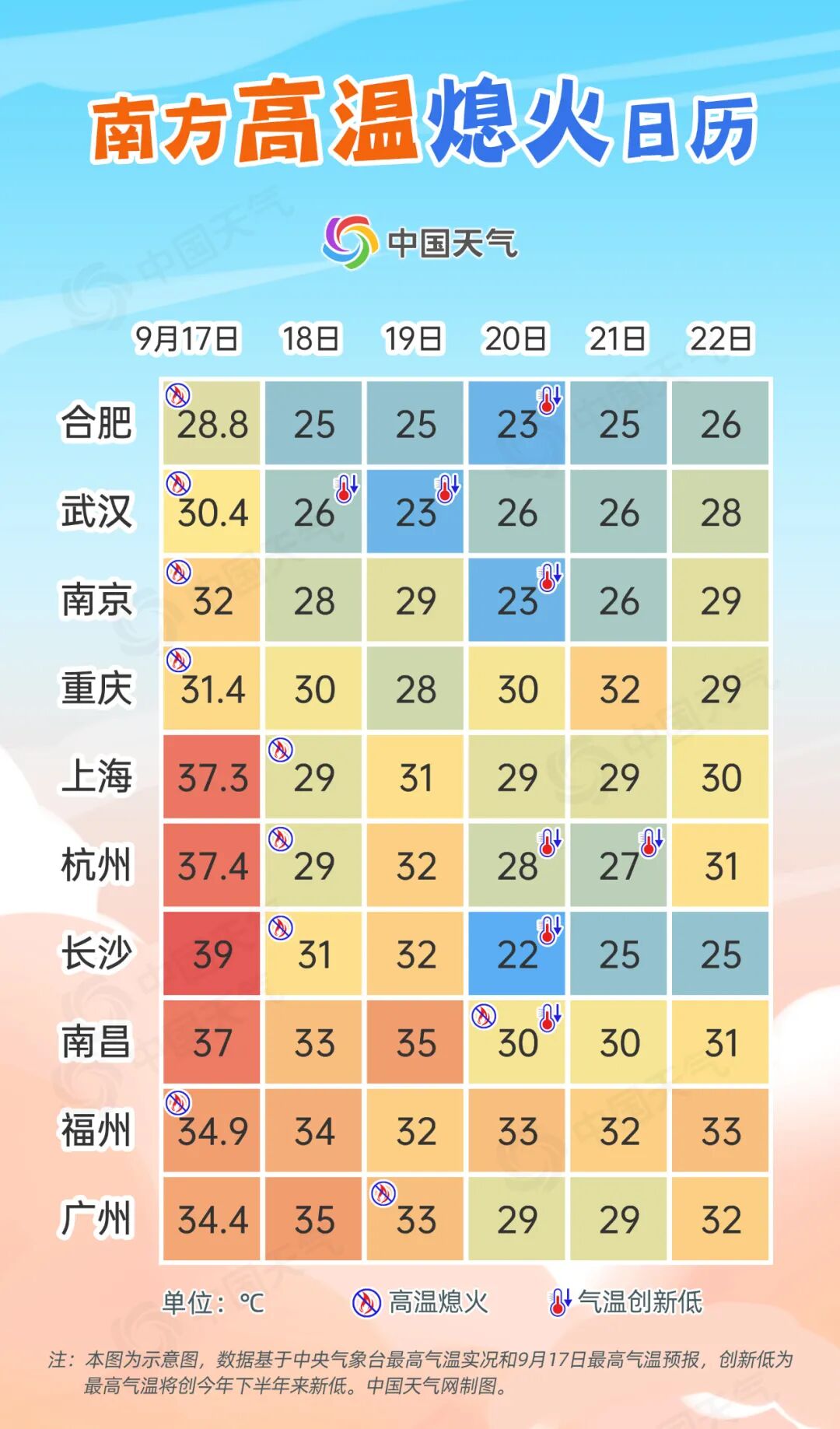 南方多地旷日持久的高温终于有望熄火了!今明天(9月17日至18日),随着下半年首场大范围冷空气南下,南方高温逐步缓解,大部地区将陆续退出“高温群聊”,部分地区甚至会创立秋后气温新低。中国天气网推出高温熄火日历,快来看看你那里高温何时退场。