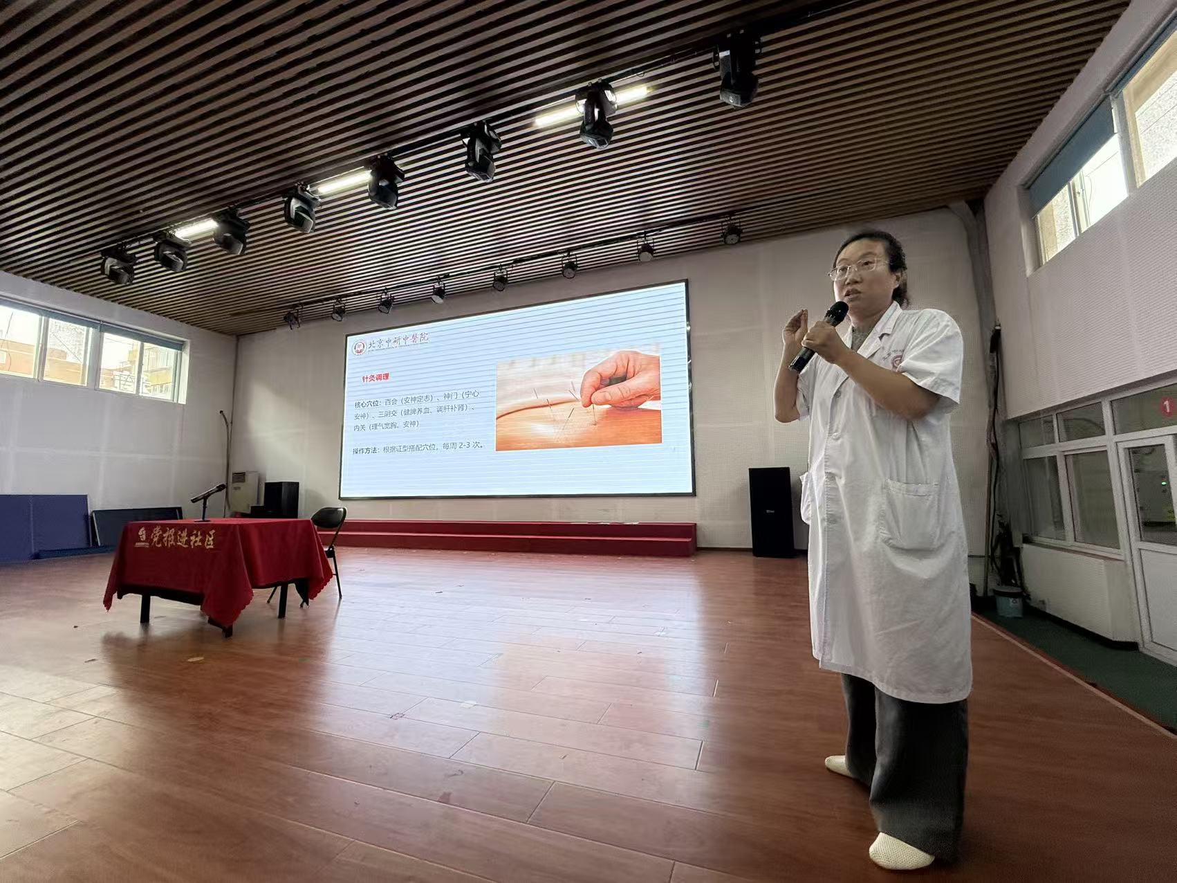 其中,由北京中研中医院针灸科医生林然带来的主题为“告别失眠健忘 回归生活好状态”的健康知识科普讲座深受参与居民的欢迎,不少居民感叹“换季睡不着、睡不好,讲座举办得很及时”。林然介绍,在中医看来,失眠与心神失养、心神不宁相关,与心、脾、肝、肾等脏腑功能失调有着密切联系,可通过针灸、推拿、食疗、情志调节等综合办法进行调理。