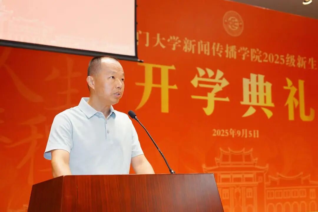 针对不同阶段的新生,院长以精炼的四个“人”字向新生寄语:希望本科新生做“探索人”,善用厦大资源培养跨学科思维;硕士新生做“研究人”,在现象与数据中提炼观点、完成高质量研究成果;博士新生做“破壁人”,敢于挑战学术范式、推动跨界融合;全体新生更要共同做好“责任人”,牢记传播既是权力更是责任,坚守新闻伦理与社会规范。希望大家以“凿壁引光”的毅力与“止于至善”的追求,在厦大新传面朝大海、心怀光明,书写独特的青春传奇。