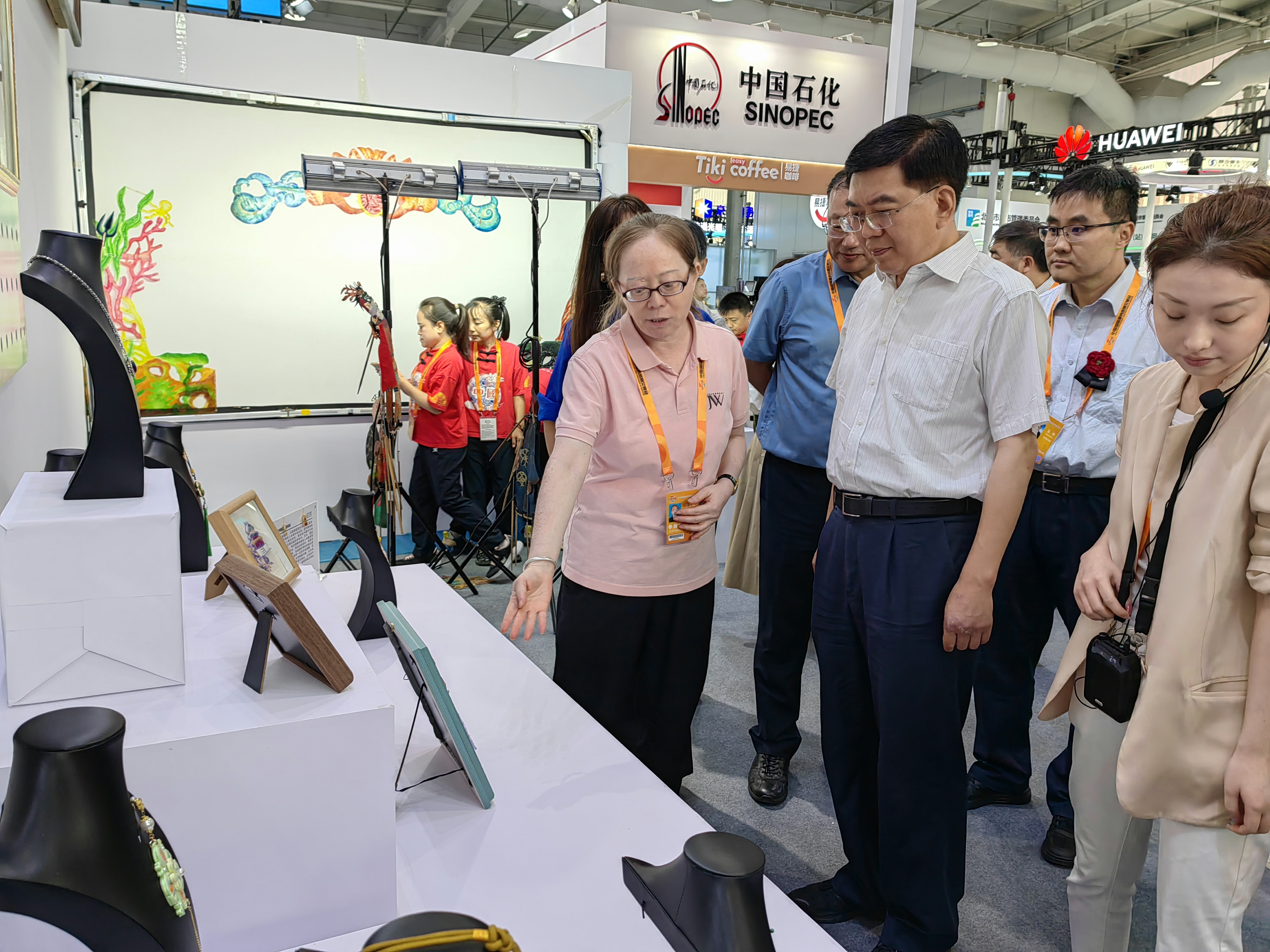 9月10日,中国国际服务贸易交易会在首钢园盛大开幕。在这场汇聚全球服务贸易精华的盛会上,北京市残疾人联合会于首钢会展中心7号馆精心设立展厅,携残疾人“爱立方”品牌再度亮相,为服贸会增添了一抹温暖而充满力量的色彩。其中,朝阳门街道温馨家园、职业康复站的手工盘扣作品在7号厅惊艳展示,吸引了众多目光。