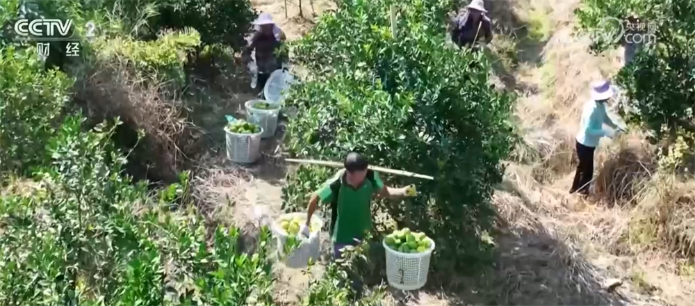 在江西于都县利村乡早熟脐橙基地,放眼望去,漫山遍野的脐橙树上挂满了成熟的果实。果农们正忙碌地穿梭在果树间,熟练地采摘着脐橙。