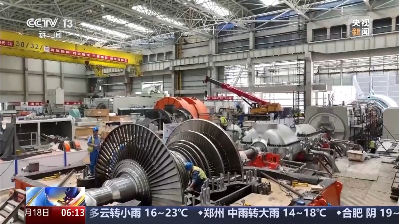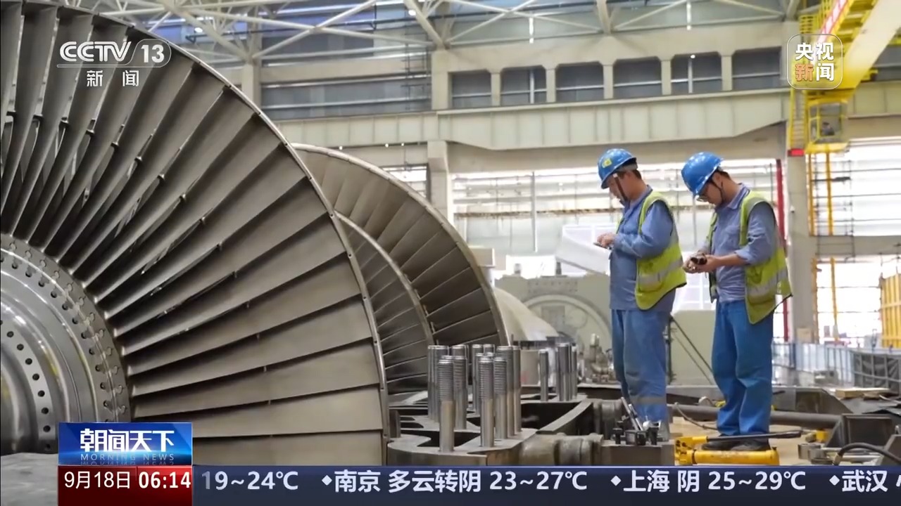 在浙江安吉,两台国内最大、效率最高的燃气机组正在进行首次点火前的调试准备,单机容量达到843兆瓦。国家能源集团表示,通过国产化的系统性整合,机组发电效率可达64.15%,效率得到大幅提升,这项工程力争年底前投入运行。