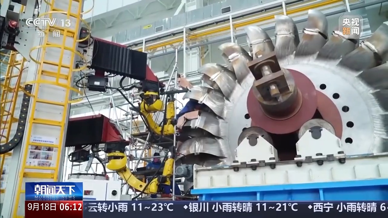 同样在四川德阳,前不久,世界单机容量最大500兆瓦冲击式水电机组转轮,完成机器人焊接,转轮完工后,将应用于西藏大唐扎拉水电站。