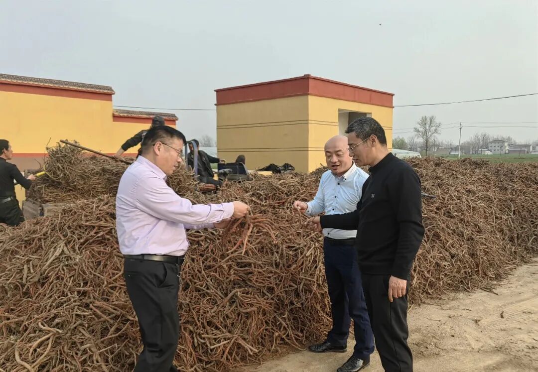 在鹿邑驻村期间,周宪飞(左一)与队友到外地考察中药材种植。(资料图片)