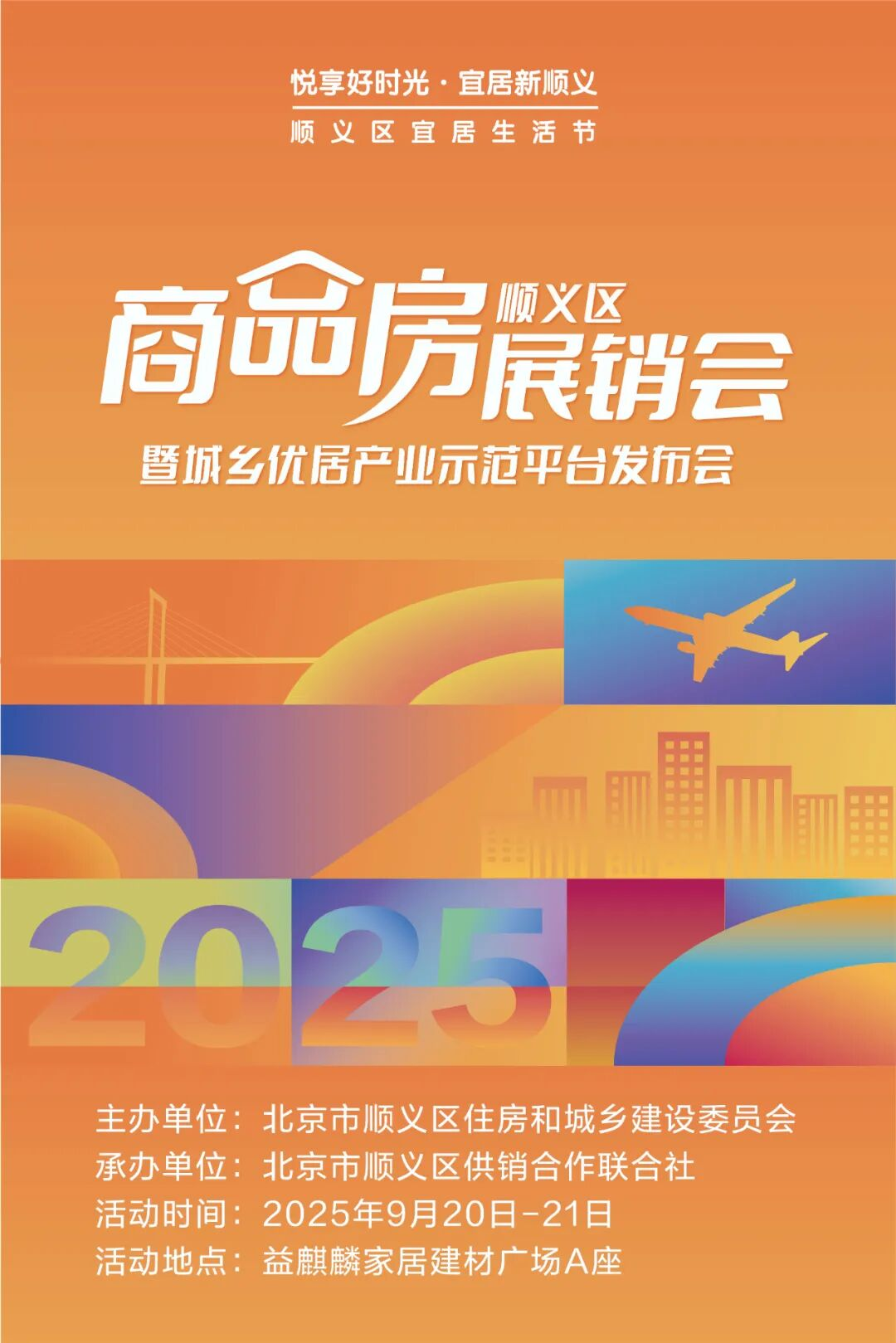 9月20日9时,2025年“顺义区宜居生活节”顺义区商品房展销会暨城乡优居产业示范平台发布会将在益麒麟家居建材广场A座举行。