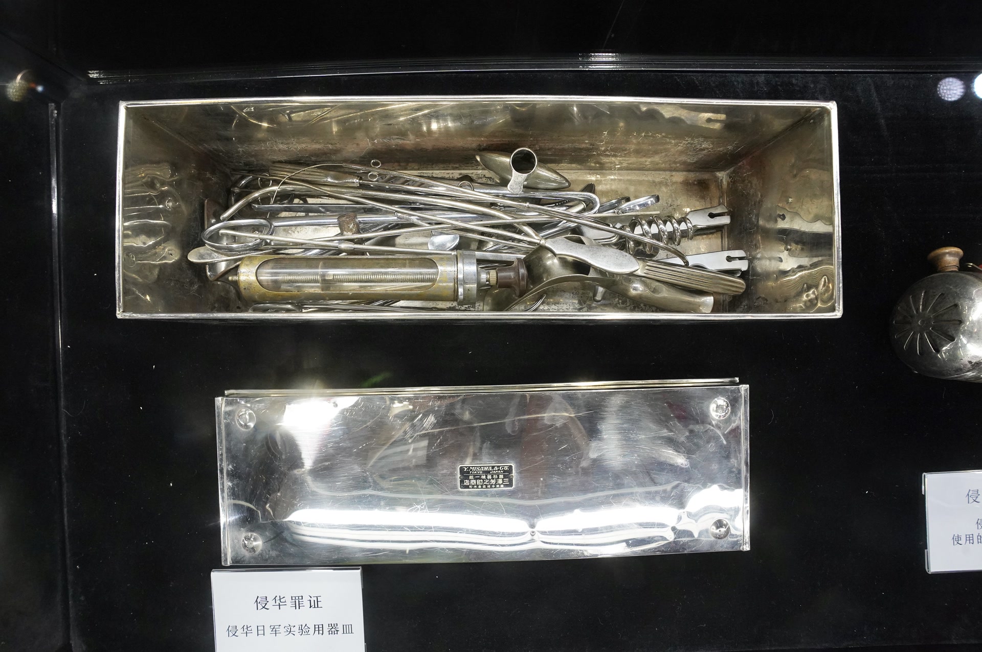此外,展览还展出一批侵华日军的罪证,包括731细菌部队曾使用的“ス一パ一安全電気煮沸器械消毒器”、电流孵卵器、显微镜、实验用器皿、大型医疗箱、消毒喷雾器、实验用药瓶、解剖器械、防毒面具防化服等一批实物——它们是731细菌部队实施侵华暴行的铁证,直观揭露了侵略者的反人类暴行。