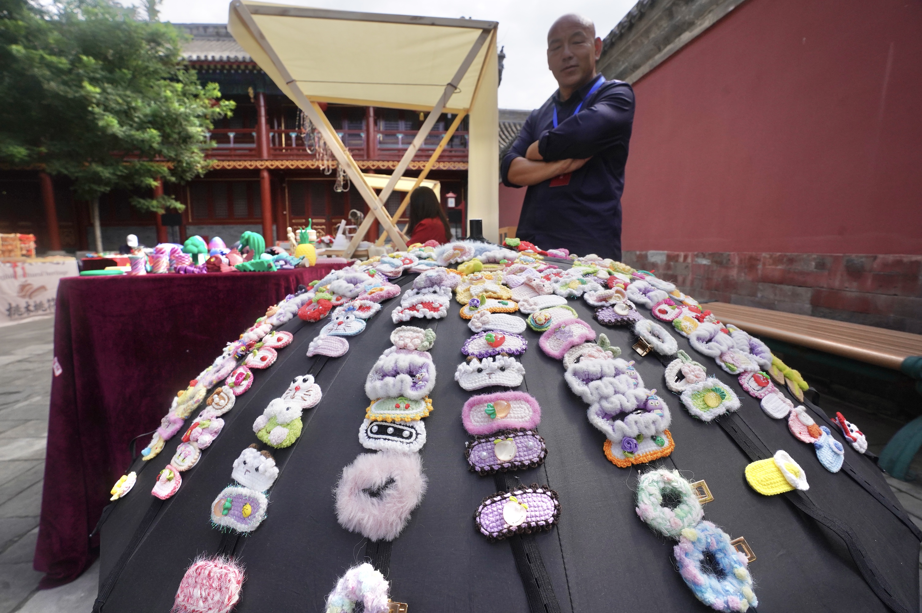 现场,非遗毛猴、皮影、内画、铁艺、泥塑,更有老北京的文化形象——威风凛凛的兔儿爷,琳琅满目、创意无限,尽显手艺人的精湛绝活。
