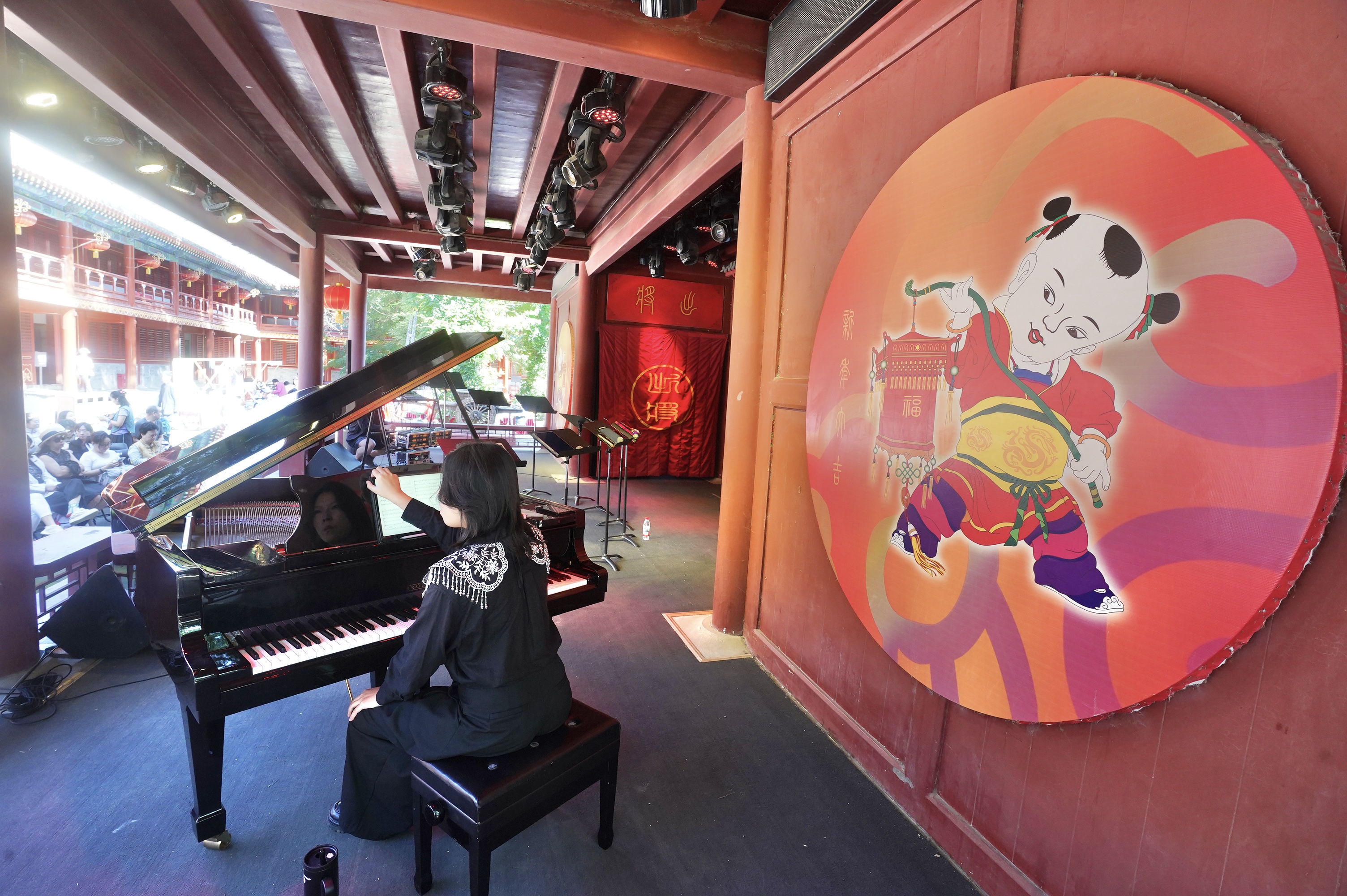 9月19日,以“燕赵弦歌·三垣绕梁”为主题的京津冀“古建音乐季”在北京民俗博物馆东岳庙馆区开演,器乐快闪、文创非遗市集、音乐分享会集中亮相,带观众聆听700年古老庙宇的音乐之声。