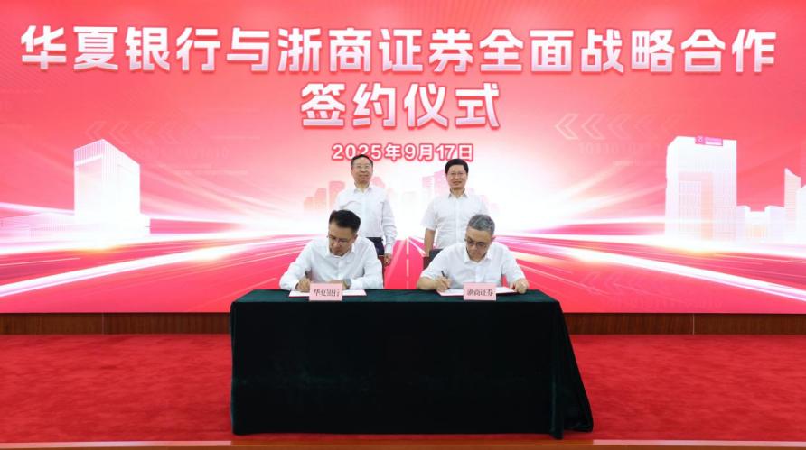 9月17日,华夏银行与浙商证券正式签署战略合作协议,标志着两家金融机构开启全方位、深层次合作新阶段。