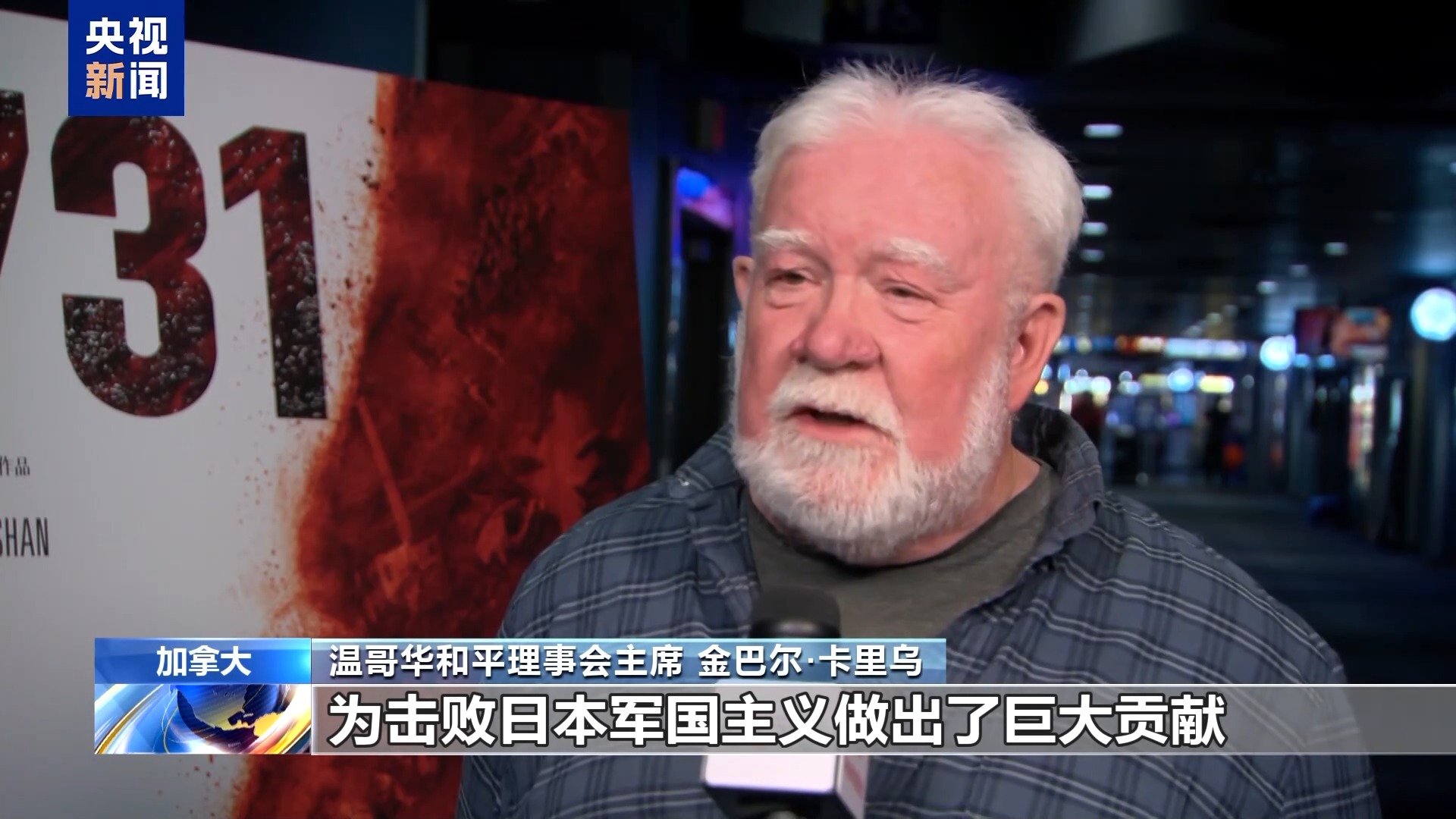 温哥华和平理事会主席 金巴尔·卡里乌:在看到这部电影的宣传之前,我从未听说过731部队。我大致了解日本侵华历史以及当时发生的一些所谓的“实验”,而这实际上是对人权的严重侵犯,违反了所有国际法。我认为像《731》这样的影片很重要,它能将历史置于更清晰的背景下,让我们能够理解中国人民在世界反法西斯斗争中发挥的关键作用。他们不只是日本法西斯主义和侵略的受害者,他们还进行了强有力的抵抗,为击败日本军国主义做出了巨大贡献,这一点应该被铭记。
