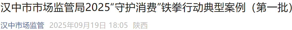 汉中市市场监管局发布2025“守护消费”铁拳行动典型案例
