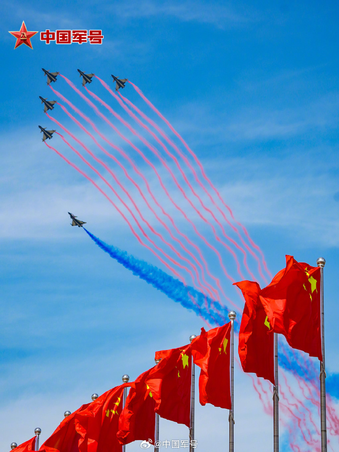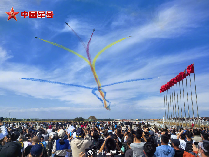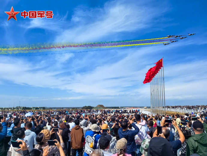 空军航空开放活动第二天,精彩飞行表演继续。镜头下,战机与红旗交相辉映,上演一幅绝美视觉盛宴!