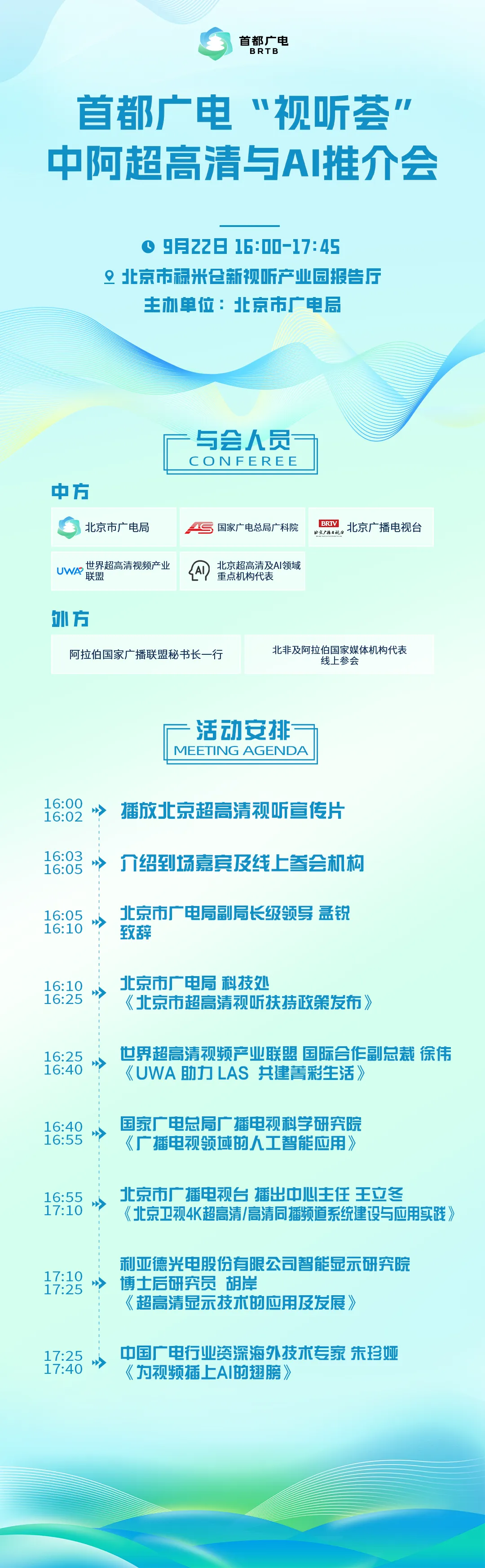 9月22日中阿超高清与AI推介交流活动即将启幕,会议议程新鲜出炉,感兴趣的伙伴速戳议程,持续关注活动最新进展,共赴这场科技文化交流盛宴。
