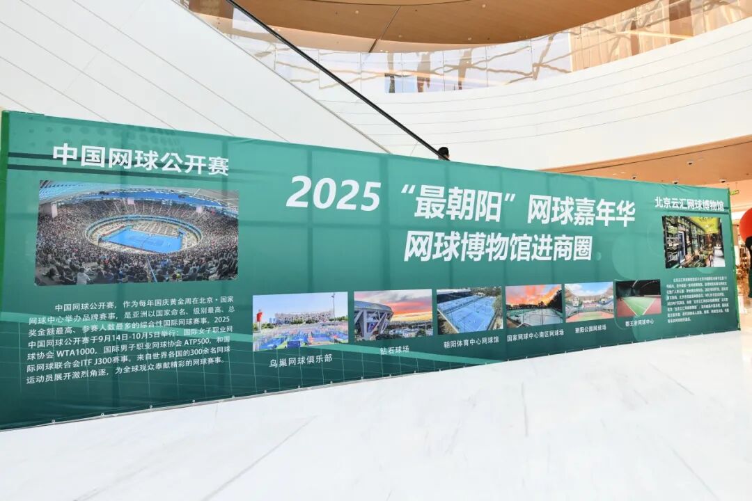 活动现场网球文化氛围浓厚,云慧博物馆网球文化快闪展——“网球时光隧道”成为市民了解网球历史与朝阳体育发展脉络的热门打卡地。在商场B1、一层中庭打造的沉浸式网球文化体验空间里,市民可在“网球百年进化史”展区,近距离观赏到19世纪木质拍、20世纪金属拍复刻品等复古网球拍,还能从朝阳网球发展历程图文墙中感受本地网球运动的蓬勃发展。