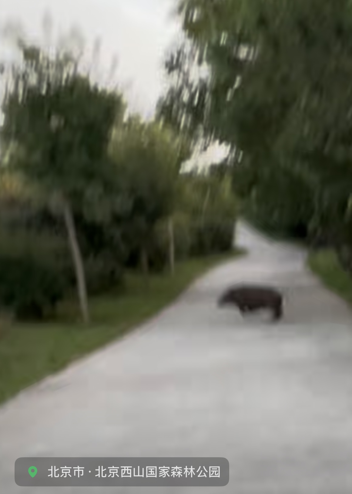 可这一回,野猪的现身依然令人感到惊讶。因为西山国家森林公园距中心城区非常近,可以说是游人如织,周边也坐落着好几个居民小区。