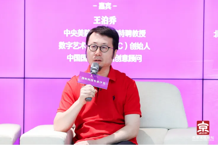 中央美术学院国际学院特聘教授、数字艺术中国(DAC)创始人、中国国家博物馆创意顾问王泊乔讲述了扎根数字艺术领域多年的体会,从单一文物数字化到文化遗产全貌的数字转移,沉浸式视听技术的不断升级正在为观众提供全新的文化体验。“在故宫马文化数字艺术展中,观众可以以一匹马的视角穿过故宫的十万件数字文物,这种超级视角是只有沉浸式能带来的独特魅力。”