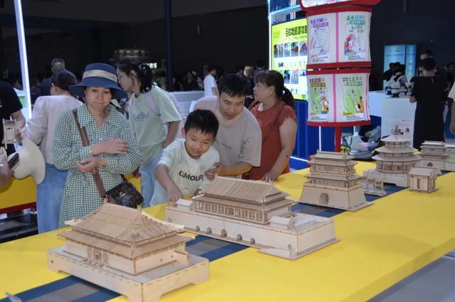 购物板块中,长达6米的北京中轴线建筑系列木质拼插模型堪称“镇展之宝”。精致的模型前始终围满游客,大家近距离端详斗拱的精巧结构与飞檐的灵动曲线,感受传统建筑的匠心与魅力。不少家长主动咨询“适合多大孩子玩耍”,计划为孩子购置一套,让孩子在亲手搭建拼装中了解古都历史。此外,北京邮政带来的中轴线手工明信片、阅兵系列冰箱贴、北京牛街小吃玩偶、故宫珍宝系列邮票等“北京礼物”,也因浓郁的地域特色吸引众多游客驻足咨询、选购。