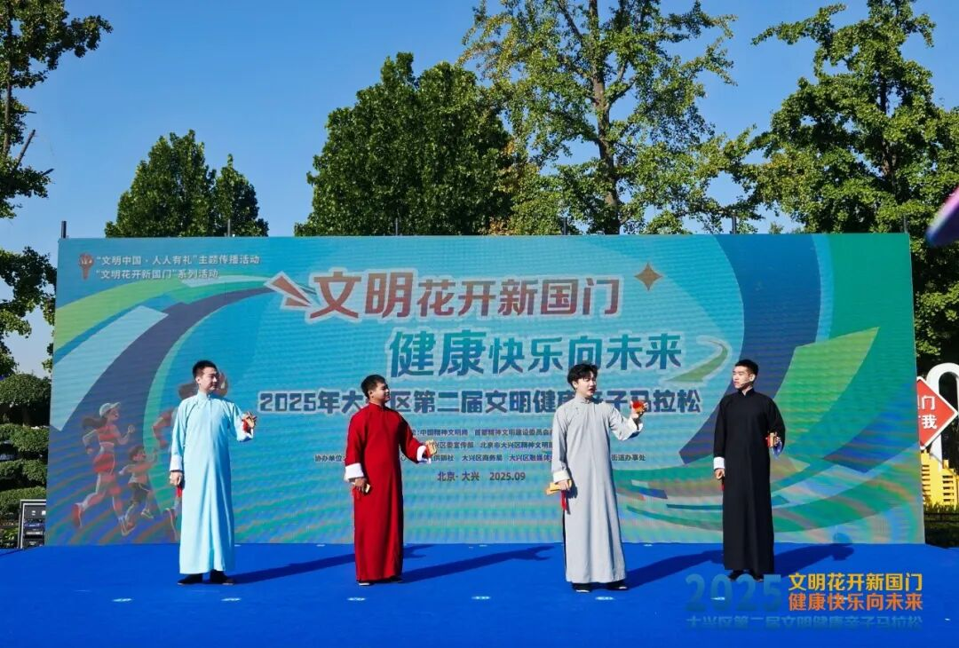 9月20日上午,“文明花开新国门 健康快乐向未来”2025年大兴区第二届文明健康亲子马拉松在念坛公园活力开跑。本次活动共吸引450组家庭参与,通过打卡体验、趣味互动等丰富多彩的形式打造了一场集文商旅体农为一体的文明盛宴。