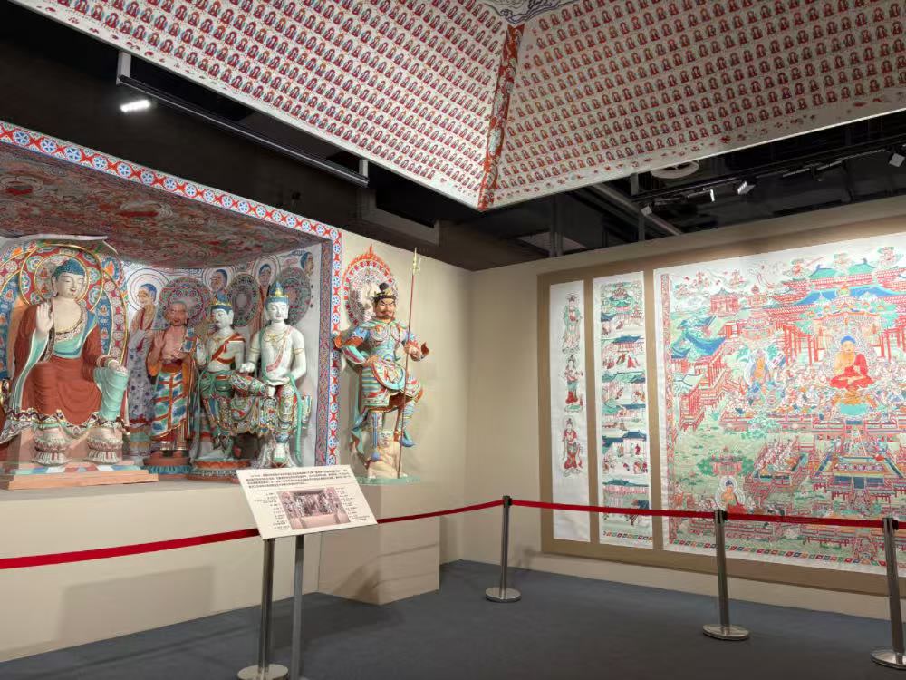 敦煌研究院“典范”“高地”建设成果展区,通过数字化沉浸式展示技术,观众可以身临其境地感受莫高窟壁画的震撼,了解敦煌文化保护与研究的最新进展,体会敦煌文化的博大精深。