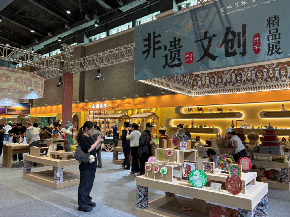 甘肃文旅非遗文创展区将甘肃各地的非遗技艺与现代创意相融合,精美的剪纸、绚丽的洮砚、灵动的庆阳香包等展品,让人目不暇接。