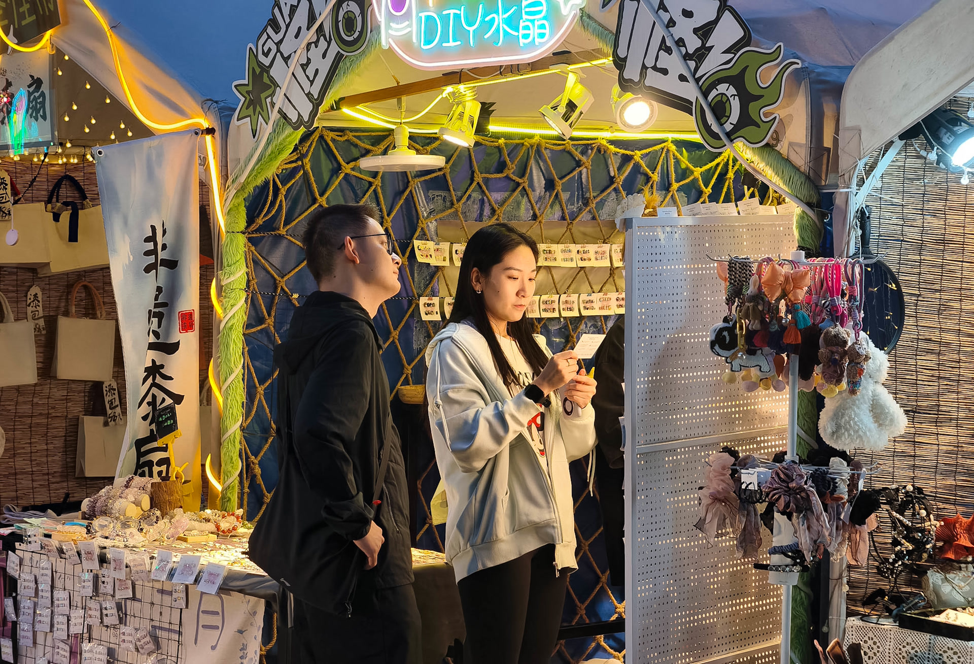 记者注意到,这场音乐会的主舞台周边有数十家特色商户,让人们在这里感受“逛市集、品美食、听音乐”的多元消费体验,将音乐与城市空间、夜经济结合,打造了集市集、美食、文创于一体的夜经济场景。