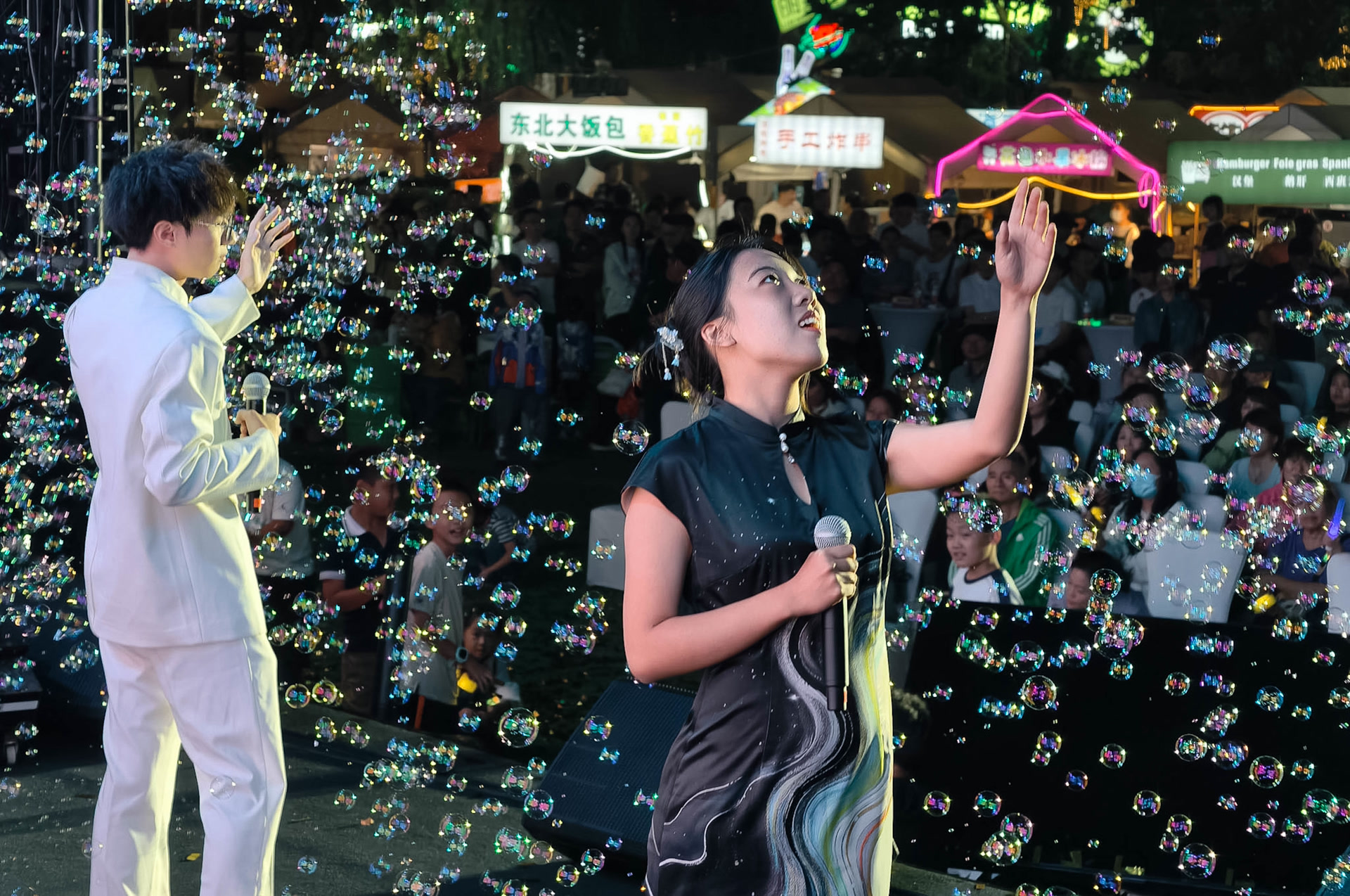 9月21日晚,丰台群众音乐盛典暨学子回家圆梦音乐会在丰益花园丽泽怪市举行,来自北京大学、中央民族大学、北京电子科技学院、北京邮电大学等多所高校学生参与其中,通过校地联动、文旅融合的创新模式,用音乐激活城市青春活力。