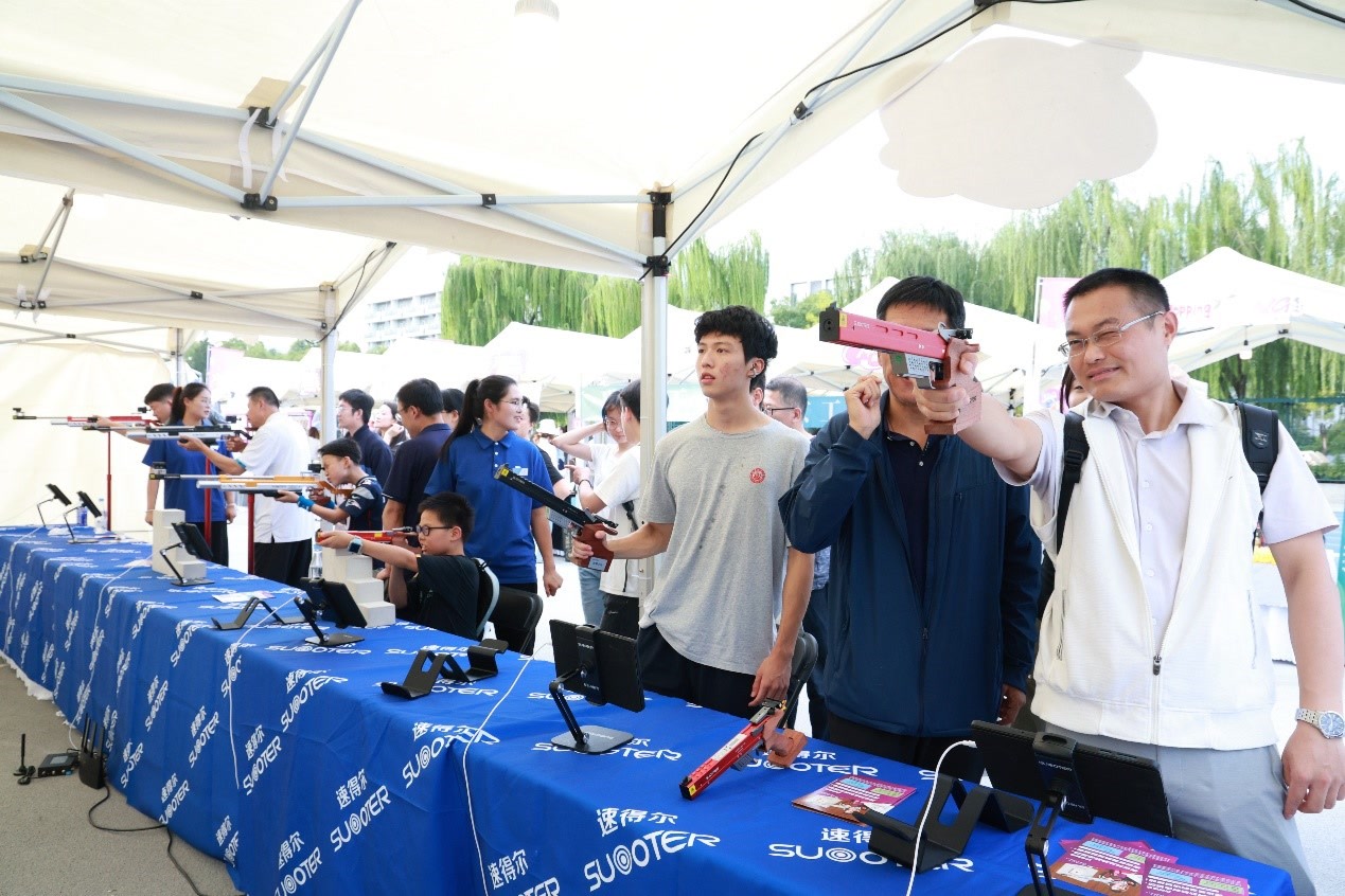 此次嘉年华设置了丰富的体验活动,其中,速得尔科技带来的激光射击最受欢迎。在体验中,参与者通过专业激光训练枪完成精度射击挑战,系统可实时显示弹着点分析与成绩排名。该项目端枪、瞄准、扣动扳机等一系列动作全部还原国际大赛场景,令射击“小白”仿佛置身奥运赛场。
