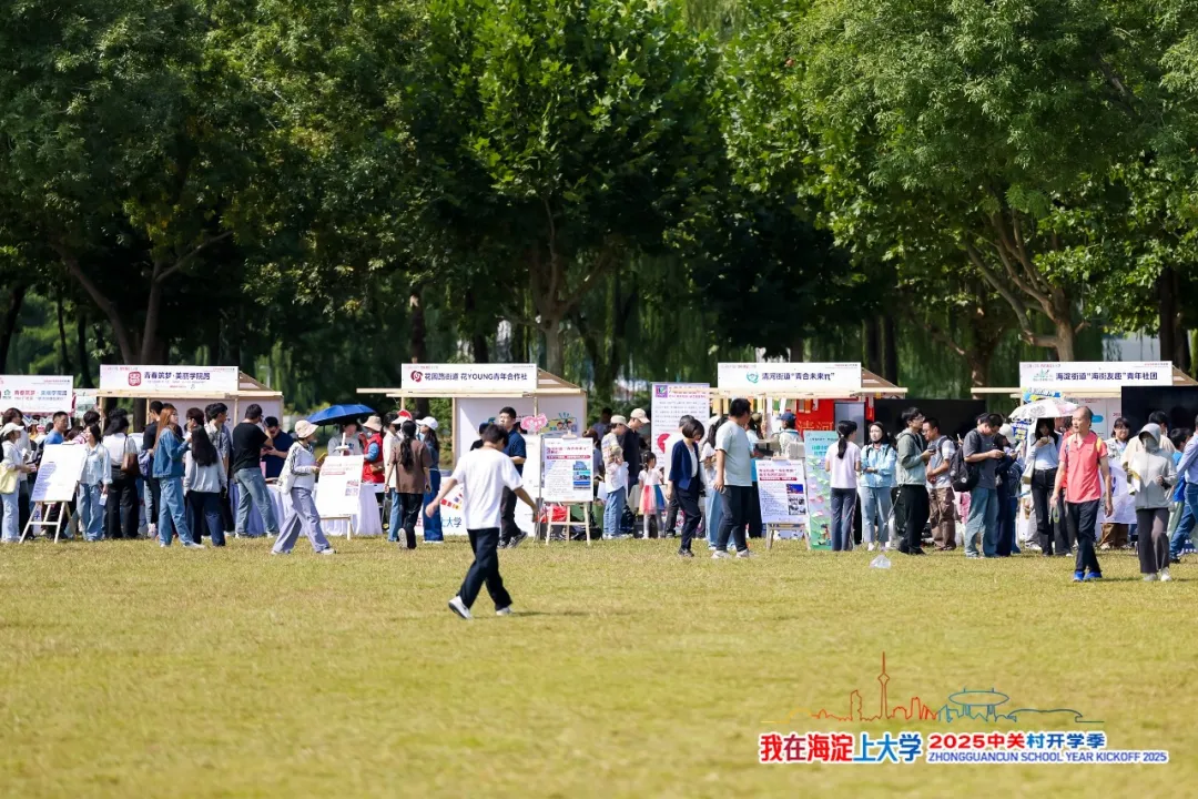 10点,活动刚刚开始,海淀公园中心草坪便已人头攒动。全区各街镇和委办局的展位环绕草坪而设,形成一条充满活力的展示长廊。每个展位都精心设计,展示着各自区域的特色资源、青年政策和公共服务。五大“社团”主题区,更是凭借独特魅力留住了不少参与者的脚步。