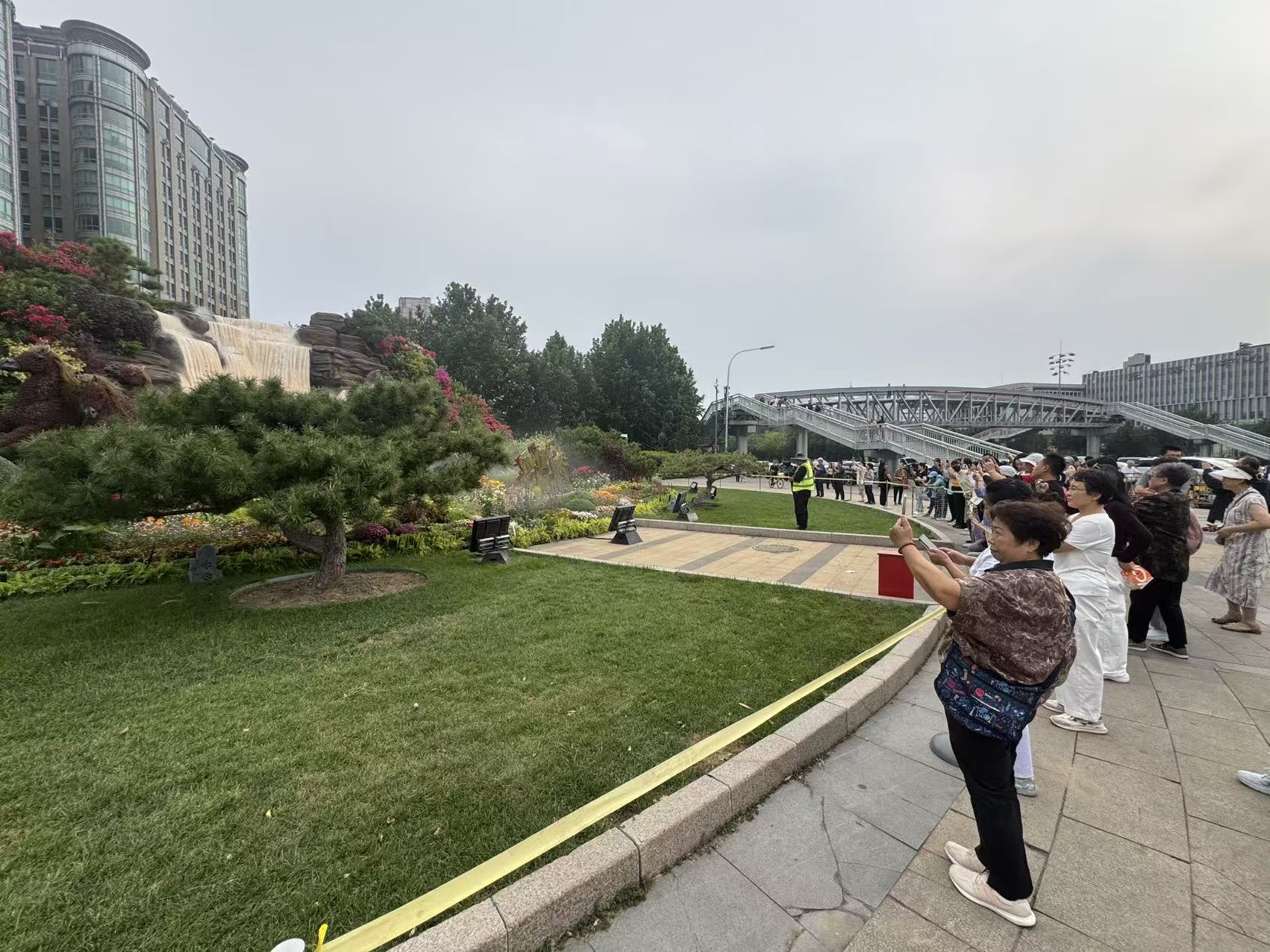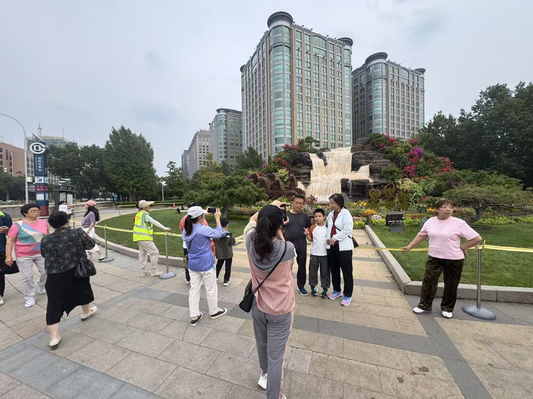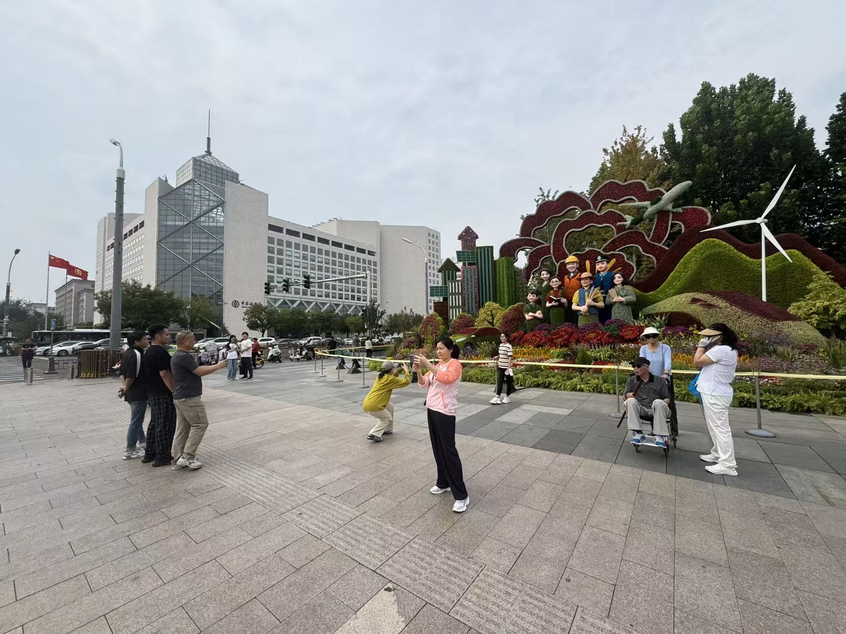 近日,长安街沿线10组纪念中国人民抗日战争暨世界反法西斯战争胜利80周年的主题花坛完成国庆元素转换和植物调整,全新亮相,吸引不少市民前来拍照打卡。