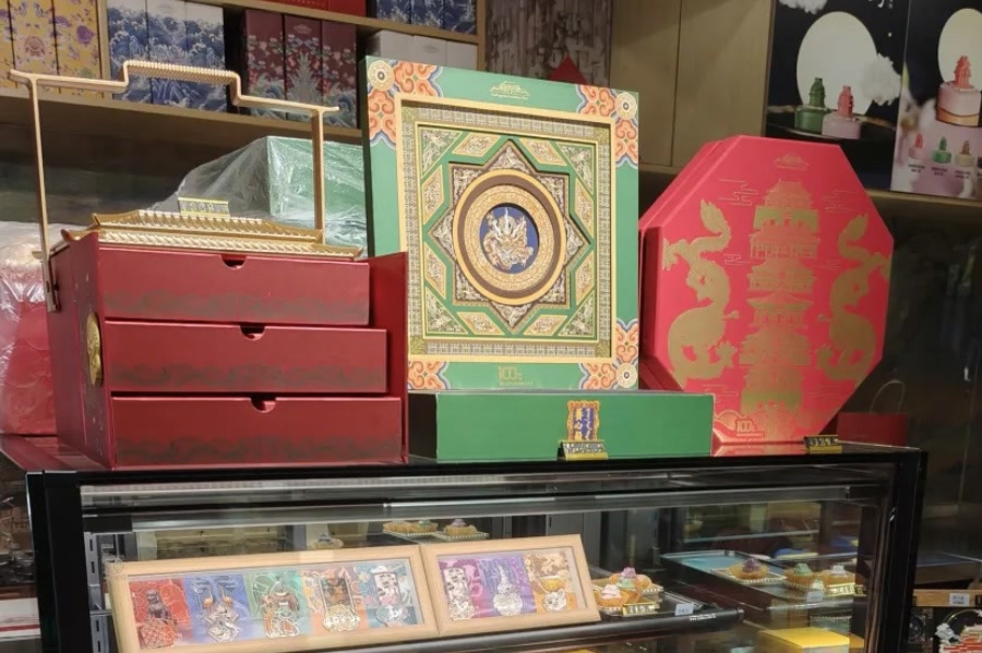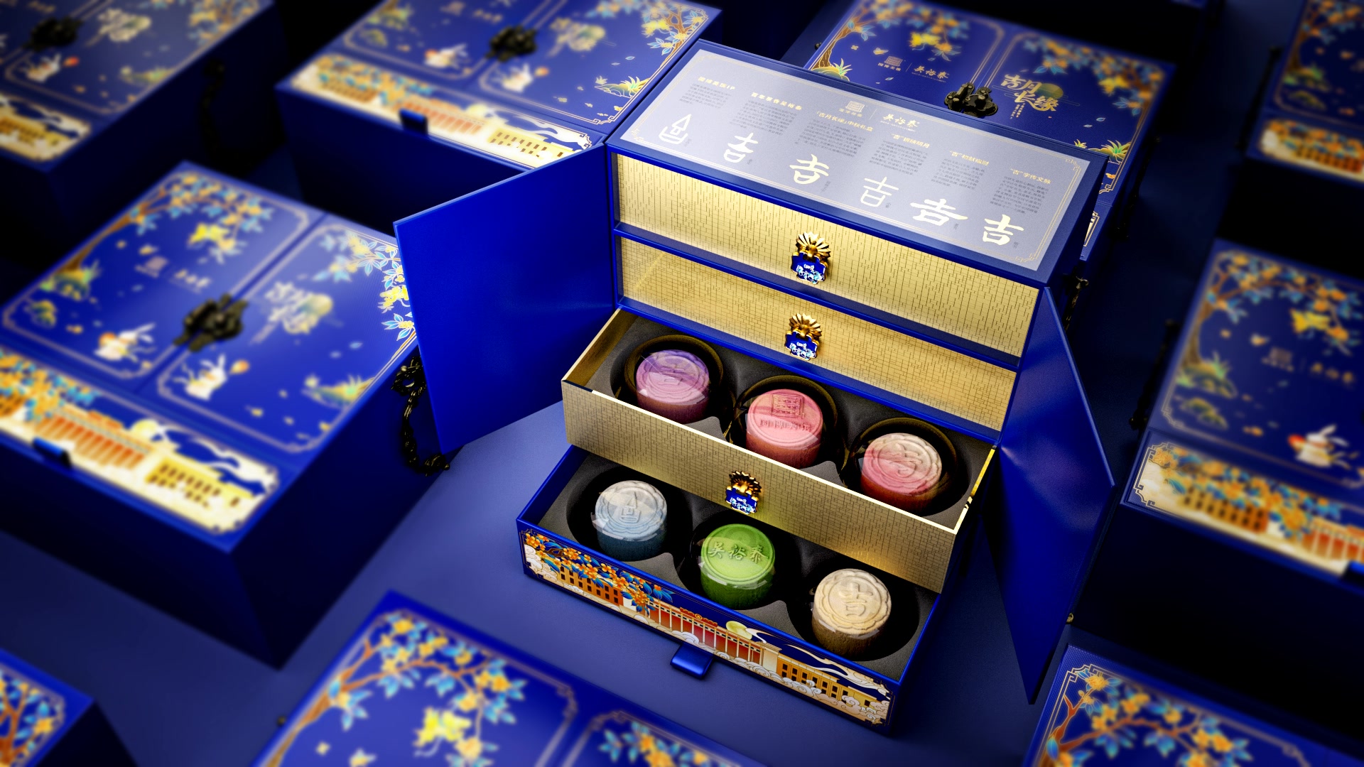 顶流“藻井”也从冰箱贴,跨界到了月饼上。故宫博物院神武门外,角楼咖啡店售卖的多款文创月饼已售罄。“养心殿蟠龙藻井月饼的销售很好,盒盖灵感是斗八混金盘龙藻井,整体几乎原样复刻了养心殿藻井的造型,蟠龙口衔宝珠,呈现威严与灵动的美感。”一位店员说,“月饼馅料也注意尽量采用低糖,更健康。有些游客会选择通过网店下单,直接将月饼寄回家。”