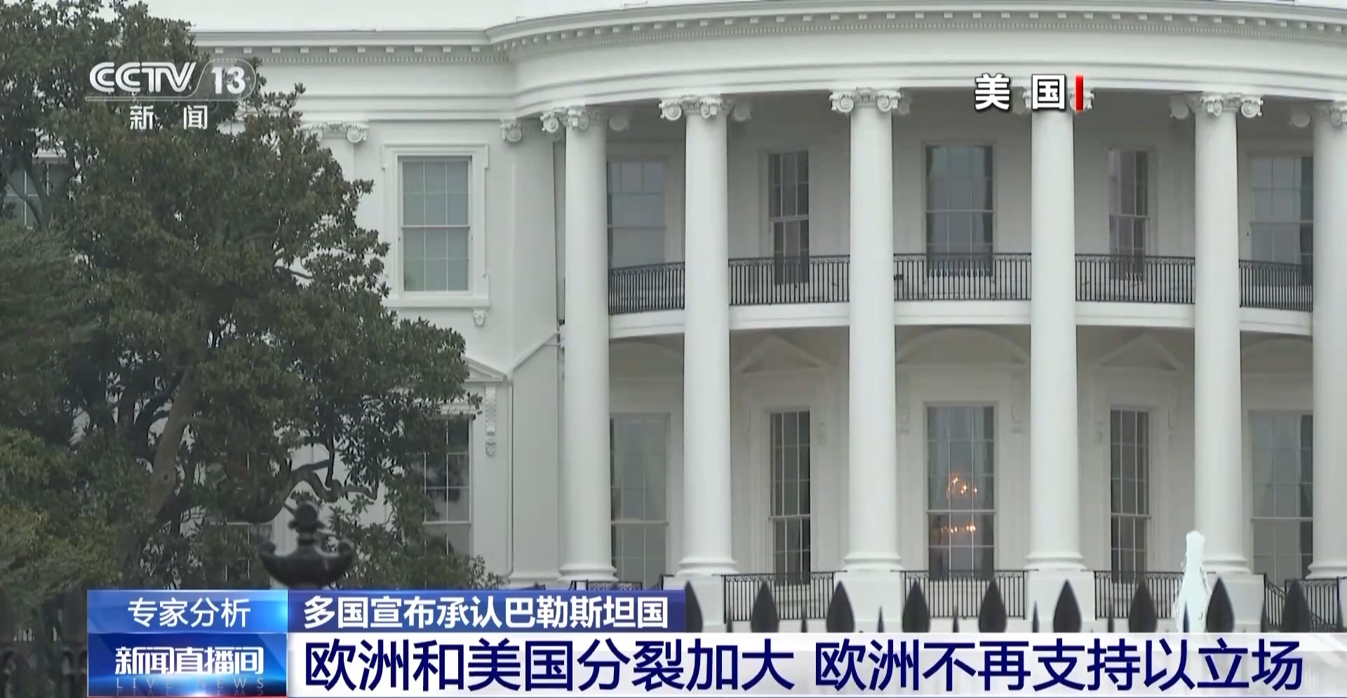 宁夏大学中国阿拉伯国家研究院教授 牛新春:这次,西方国家内部分裂了,即欧洲和美国分裂了,现在坚定支持以色列的就只有美国一个大国,欧洲国家都与美国拉开了距离。到今天为止,美国还是支持以色列的立场,美国谴责了欧洲国家,美国还对巴勒斯坦进行了制裁,美国不允许巴方代表阿巴斯去联合国参加大会。