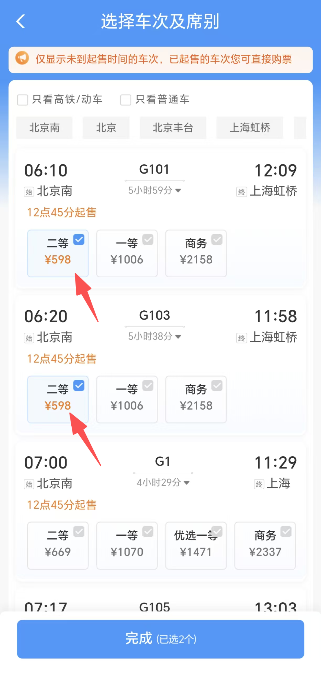 按照需求添加不同的车次和席别