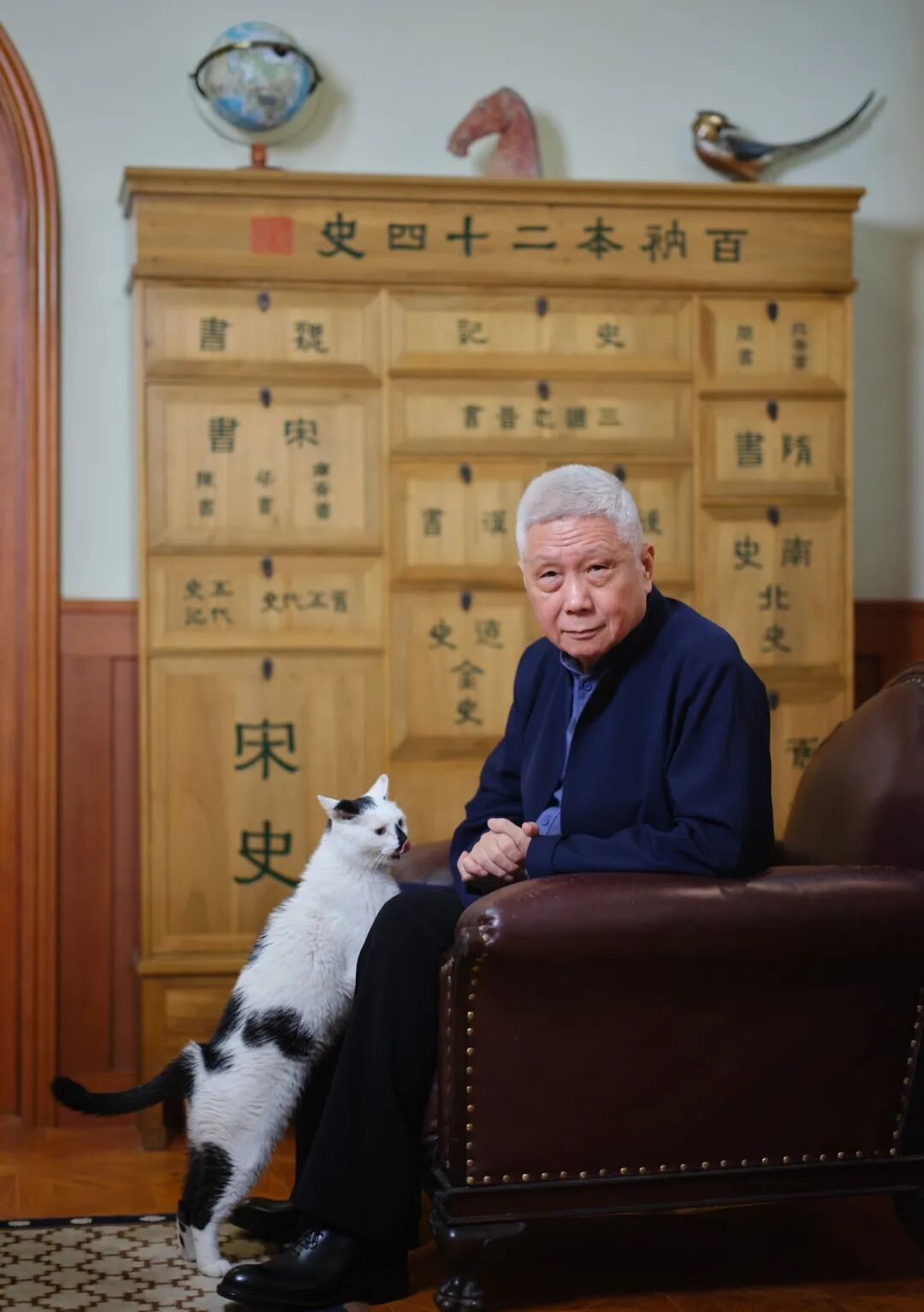 ▲马未都和“观复猫”。新京报记者 郭延冰 摄