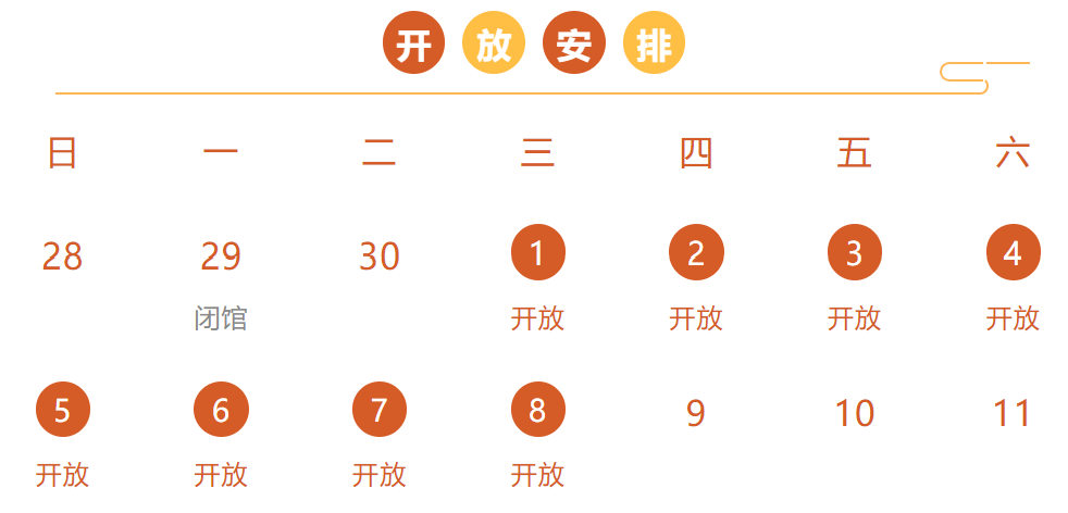 1.国庆中秋双节假期(10月1日至8日)本馆正常开放,开馆时间:9:00-17:00(16:30停止入馆)。