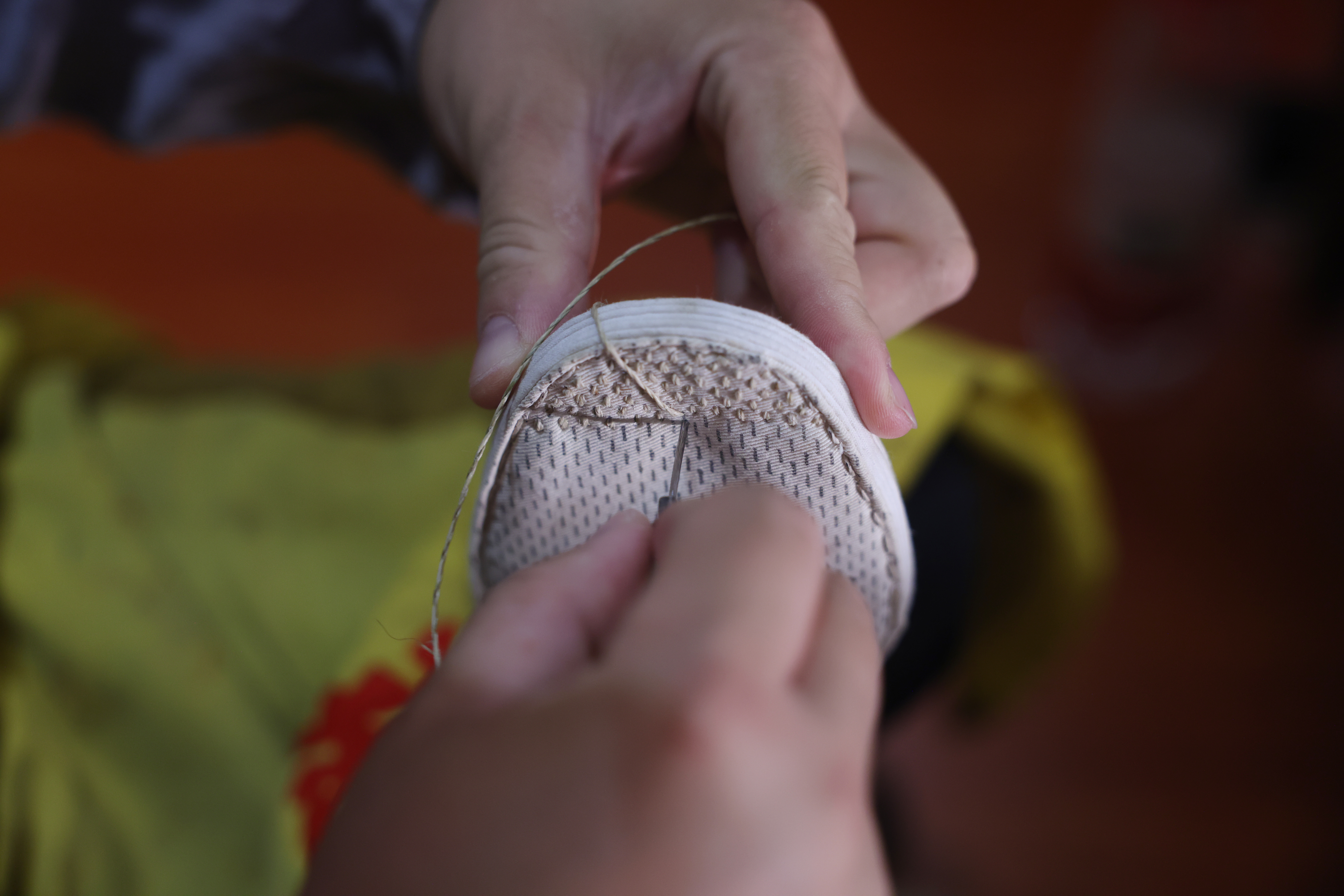 直到今天,坐在小马扎上制鞋仍是传统手工制鞋工艺的一部分。制鞋师傅坐在马扎上,腿部自然呈90度弯曲,腰部略微向前弓,双手肘搭在大腿上,一坐七八个小时,大约一周后,一双千层底布鞋方可完工。“小马扎高度正合适,手能使上劲儿,这也是千百年来老师傅传下来的经验。”任晨阳说。
