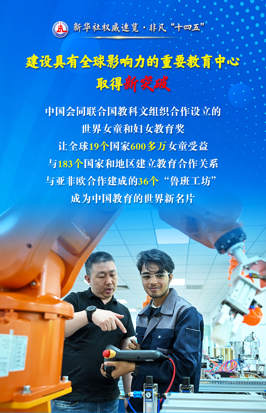 23日,国新办举行“高质量完成‘十四五’规划”发布会,教育部部长怀进鹏介绍“十四五”时期加快建设教育强国进展成效。他说,“十四五”时期,在党中央国务院坚强领导下,在全社会大力支持下,规划确立的各项目标任务全面高质量完成,教育取得历史性成就、发生了格局性变化。跟随海报,一起了解。