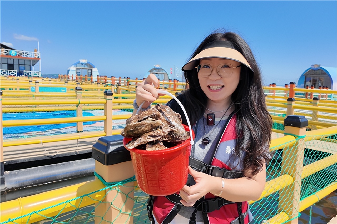 网络达人“听海看海啊”在贝类采摘区收获满满,她提着一桶亲手采摘的海鲜兴奋地表示:“非常高兴能参加这次活动,期待中午就能品尝到自己采摘的海鲜!”
