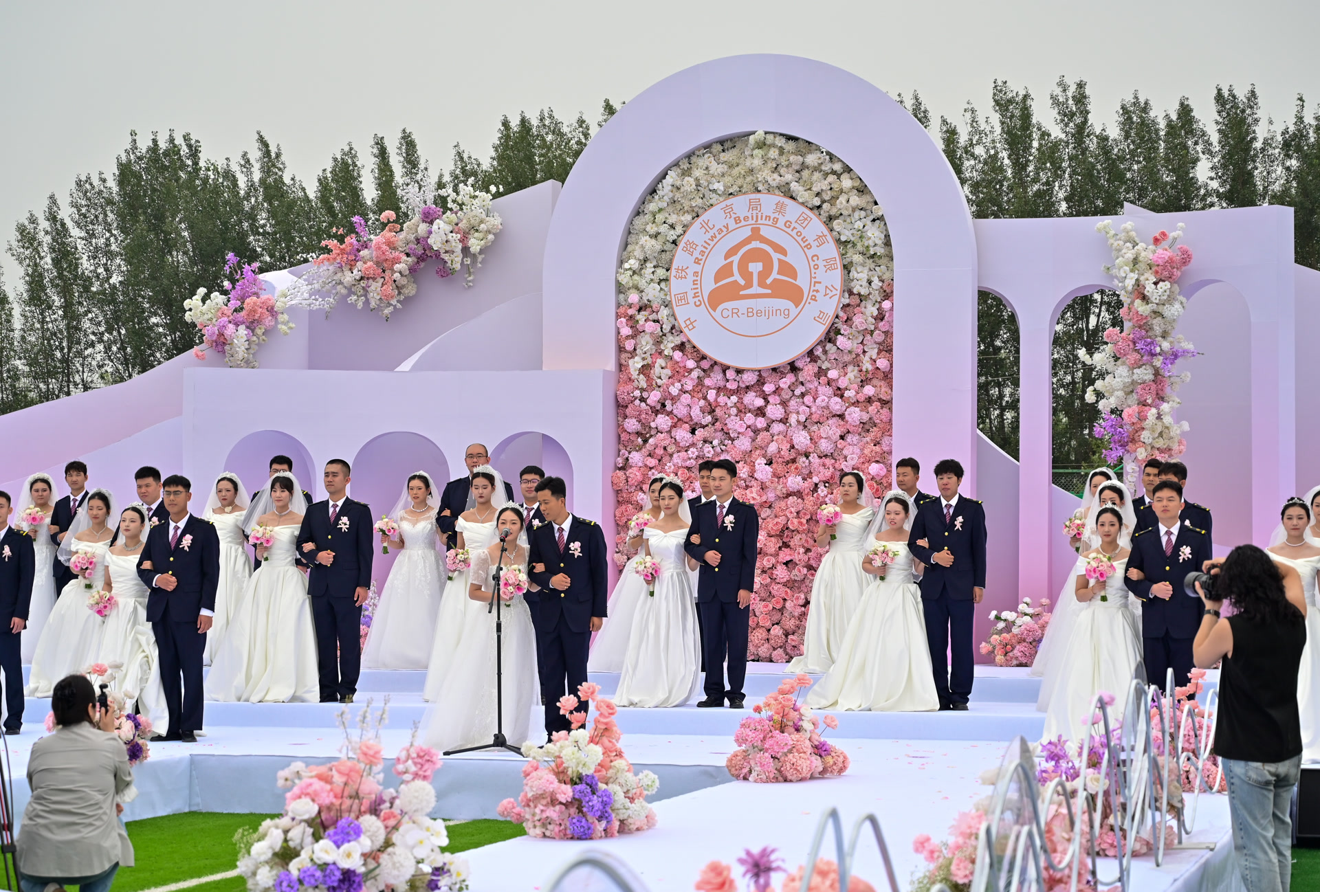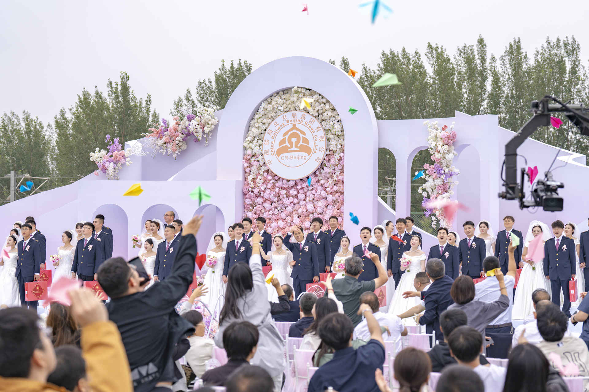 “复兴号”列车来证婚,从“幸福站”出发,驶向“永远”······9月23日上午,一场别开生面的集体婚礼在国铁北京局北京动车段举行。30对铁路新人齐聚于此,共同奔赴神圣的婚姻殿堂,200余名家属和铁路职工也现场送上祝福,婚礼仪式被浪漫、甜蜜的氛围“包裹”。