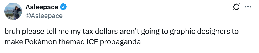 另一名网友说,“求你告诉我,我的税金没有被用来雇平面设计师为移民与海关执法局(ICE)做宝可梦主题的宣传品”。 ↓