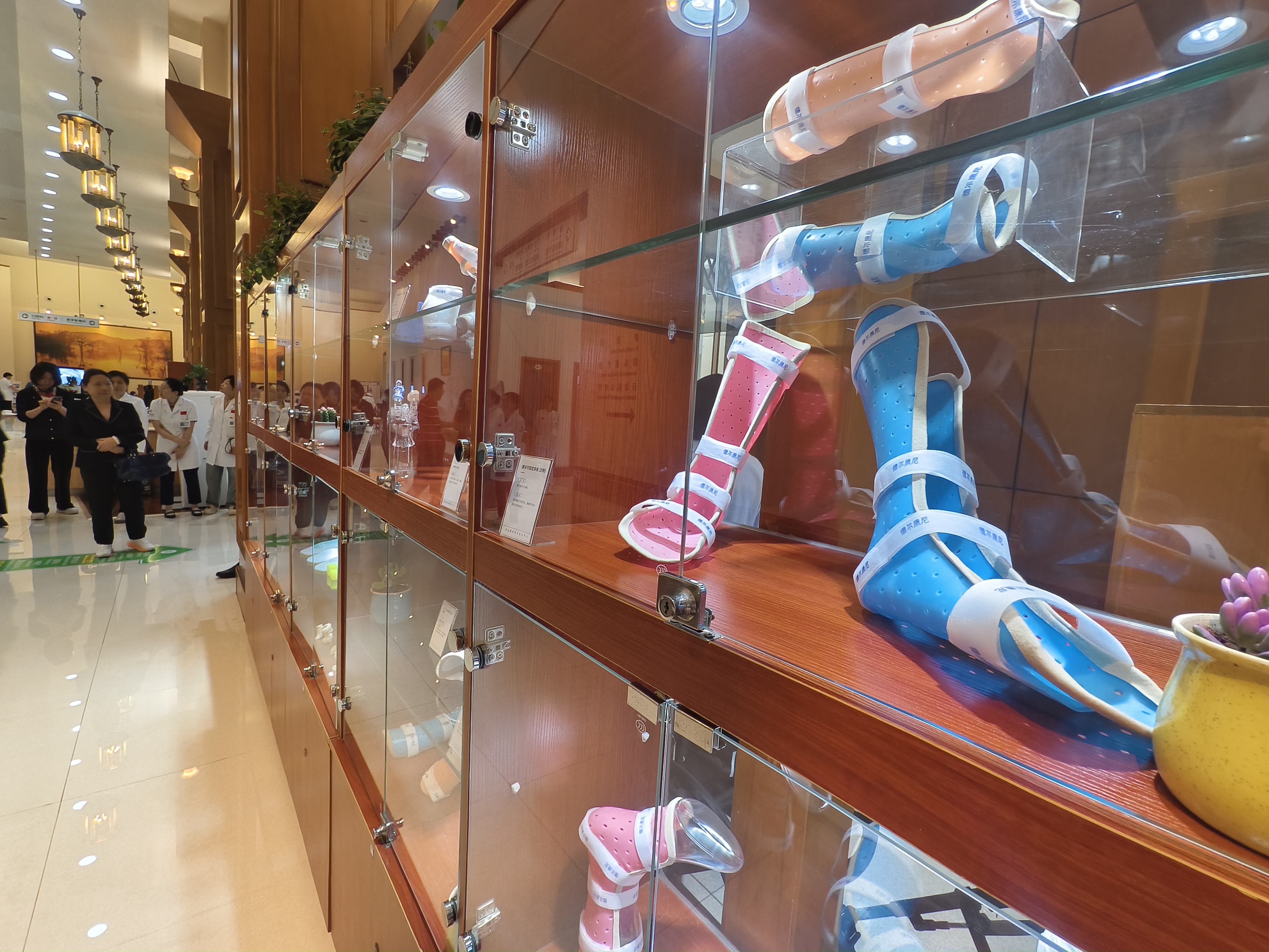 “现在的踝关节、肘关节、腿部等的固定夹板,都能够根据患者的体型、需要固定的方式进行定制,帮患者保持最佳康复姿势,定制的功能鞋垫、3D打印鞋,能帮助使用者进行下肢运动的精细控制,降低运动损伤概率。”现场工作人员介绍着展柜里的一个个定制辅具。