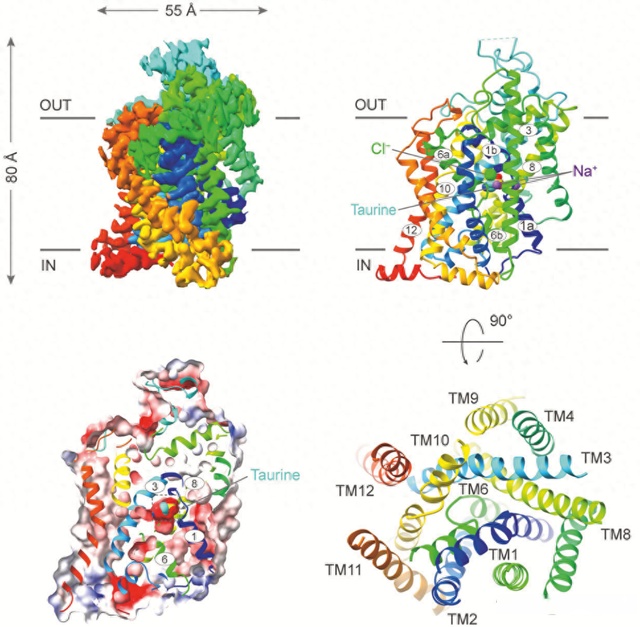研究成果以“人类牛磺酸转运体摄取与抑制的分子基础”(Molecular basis of human taurine transporter uptake and inhibition)为题,于8月11日发表于《自然·通讯》(Nature Communications)。