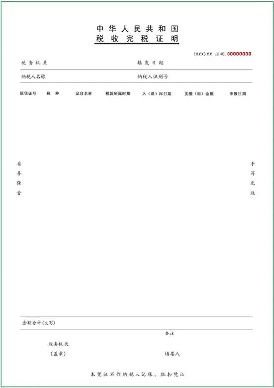 △图2:《个人所得税完税证明》表样