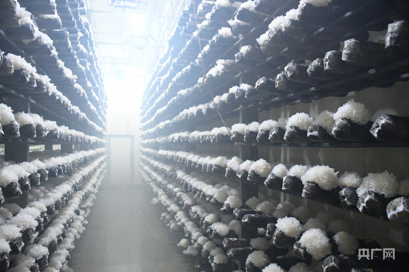 正在进行雾化调节湿度的智慧菇房(央广网发 张雨欣 摄)